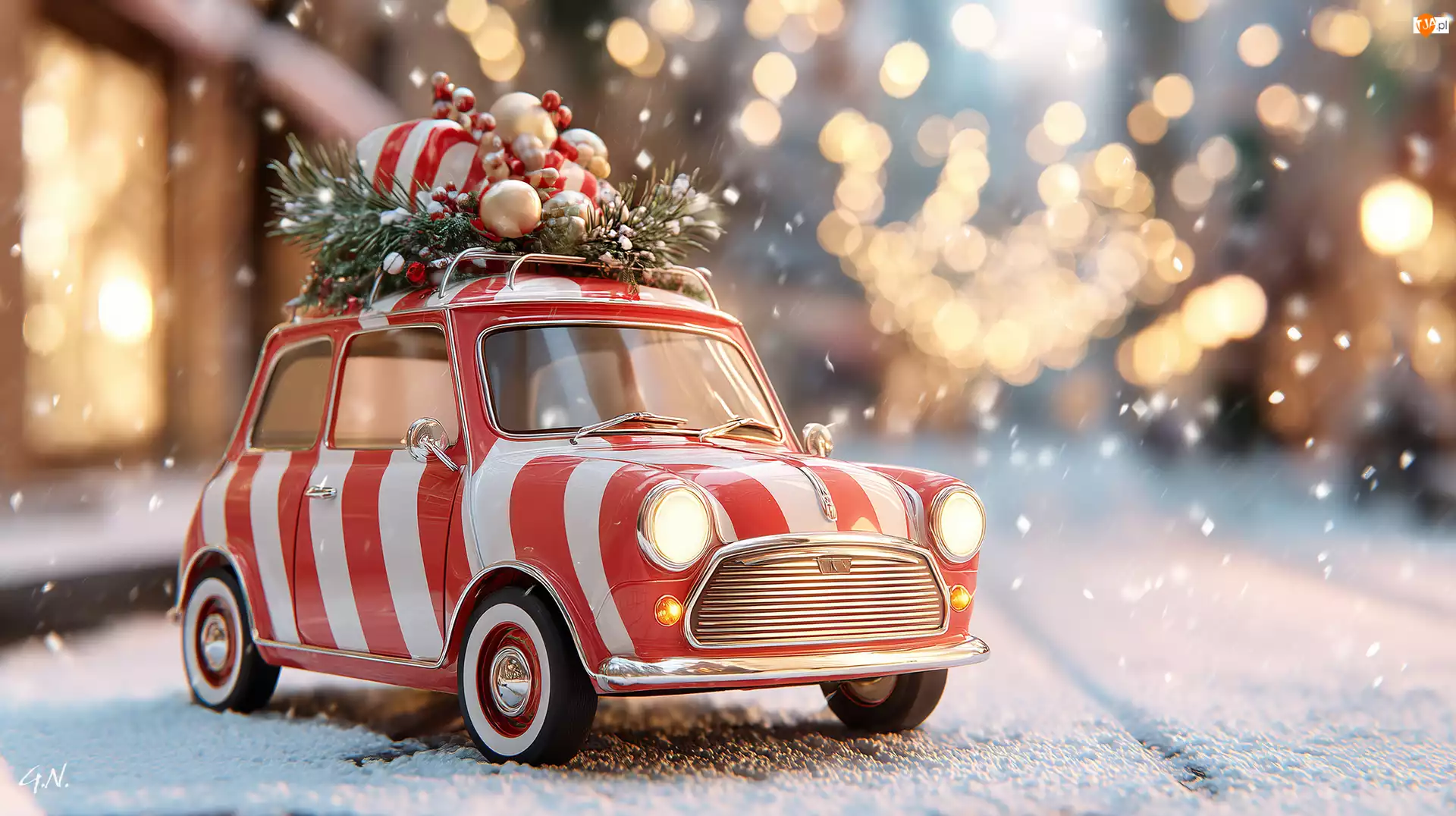 Ozdoby, Grafika AI, Samochód, Świąteczne, Zima