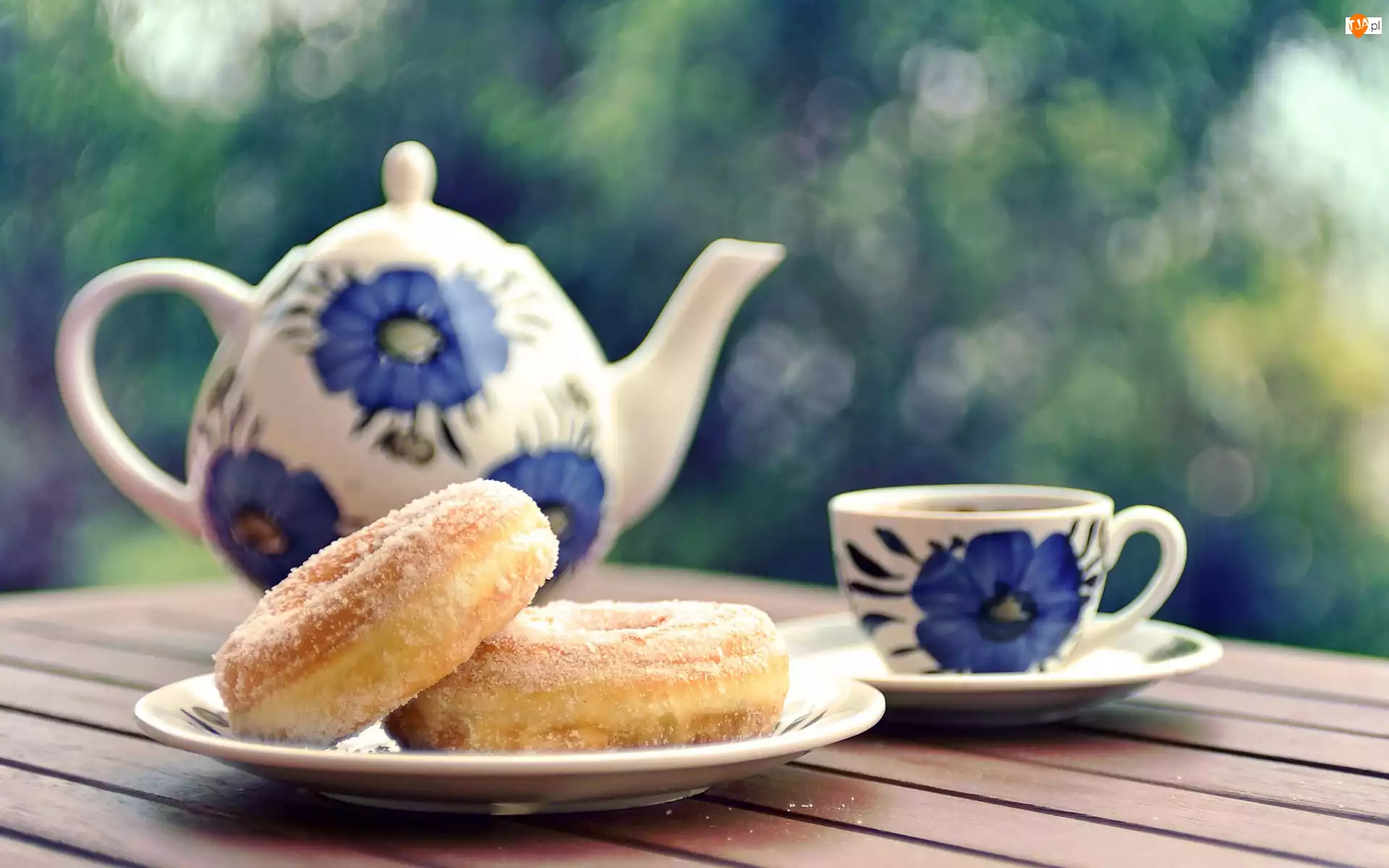 Pączki, Imbryk, Spodek, Filiżanka, Talerzyk