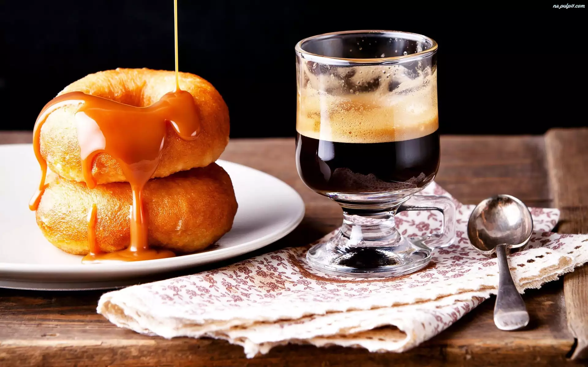 Kawa, Łyżeczka, Polewa, Pączki, Szklanka