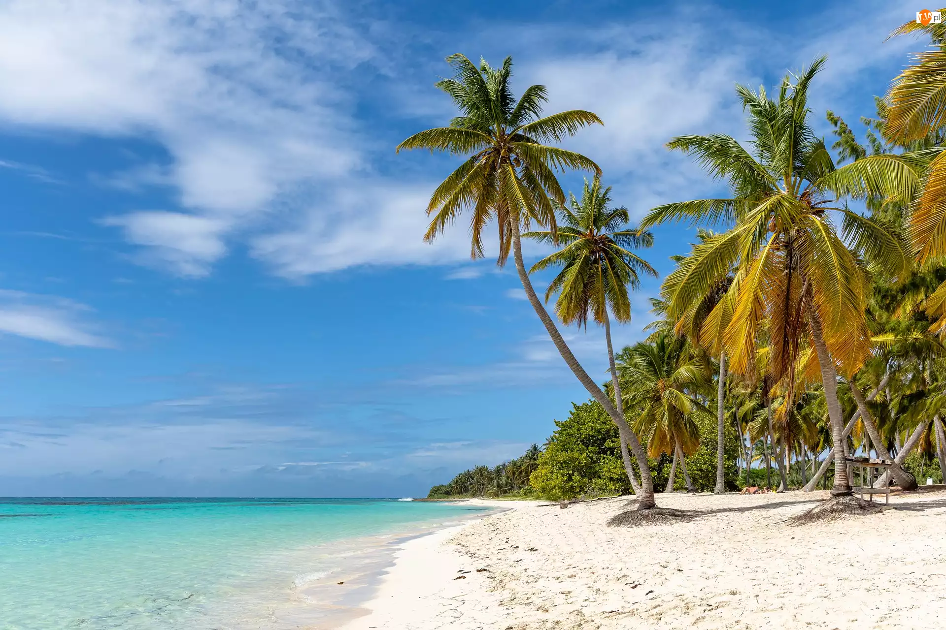 Plaża, Morze, Palmy, Chmury, Brzeg, Niebo