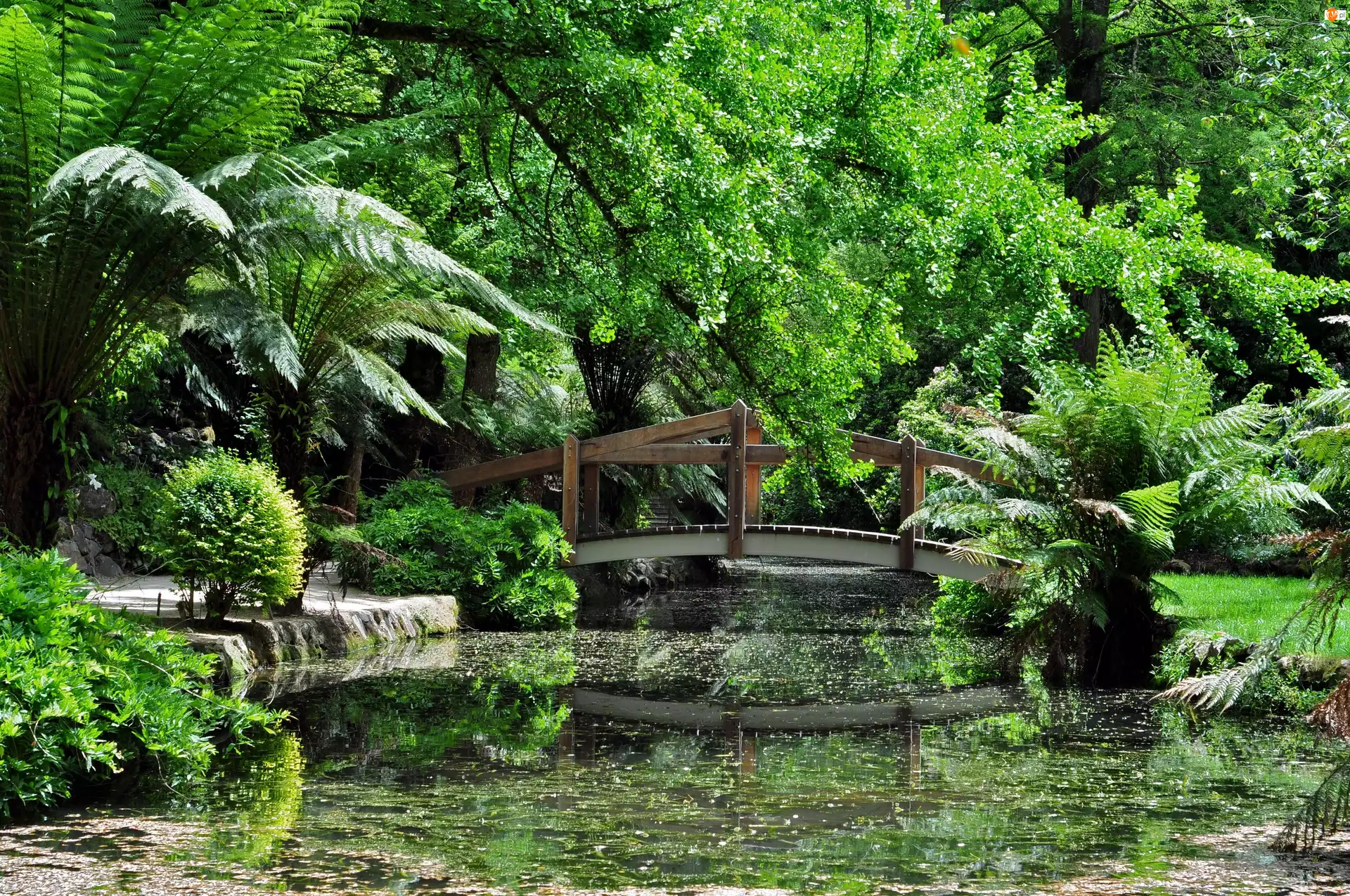 Palmy, Park, Staw, Egzotyczny, Mostek