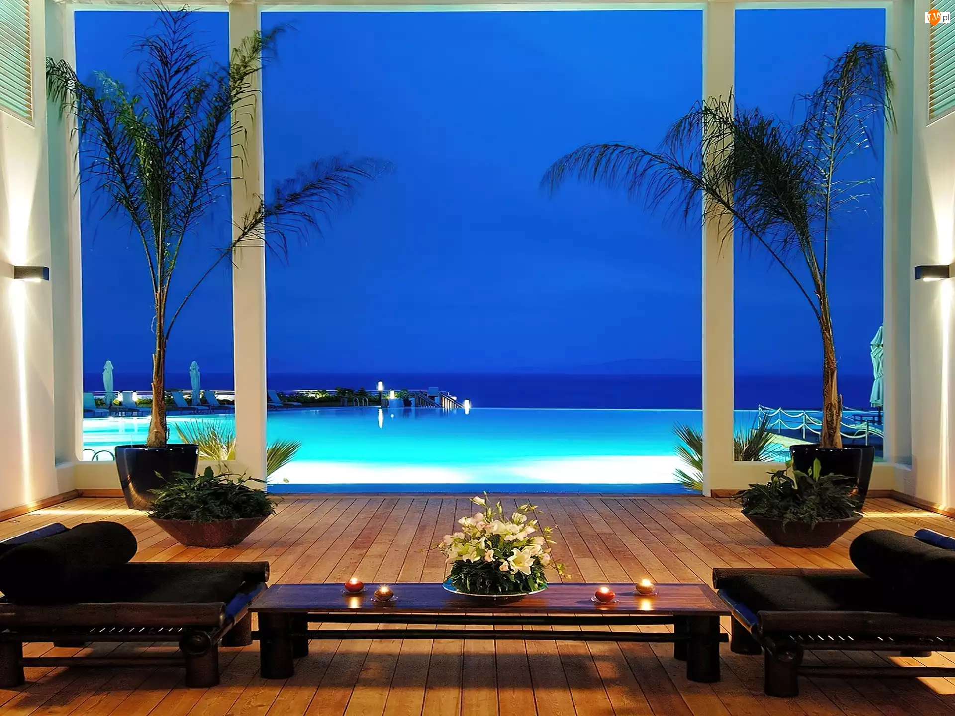 Palmy, Patio, Basen