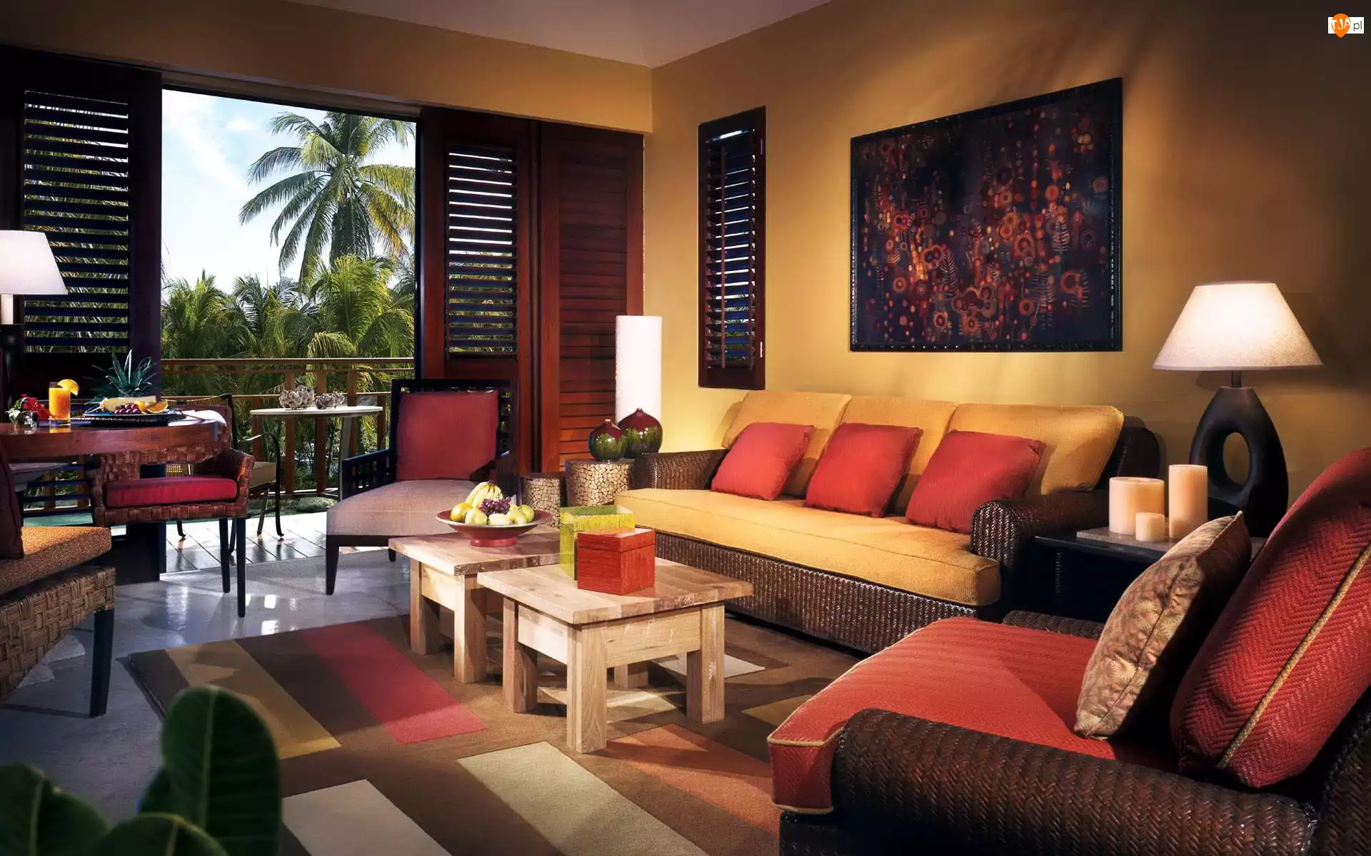 Palmy , Salon, Balkon