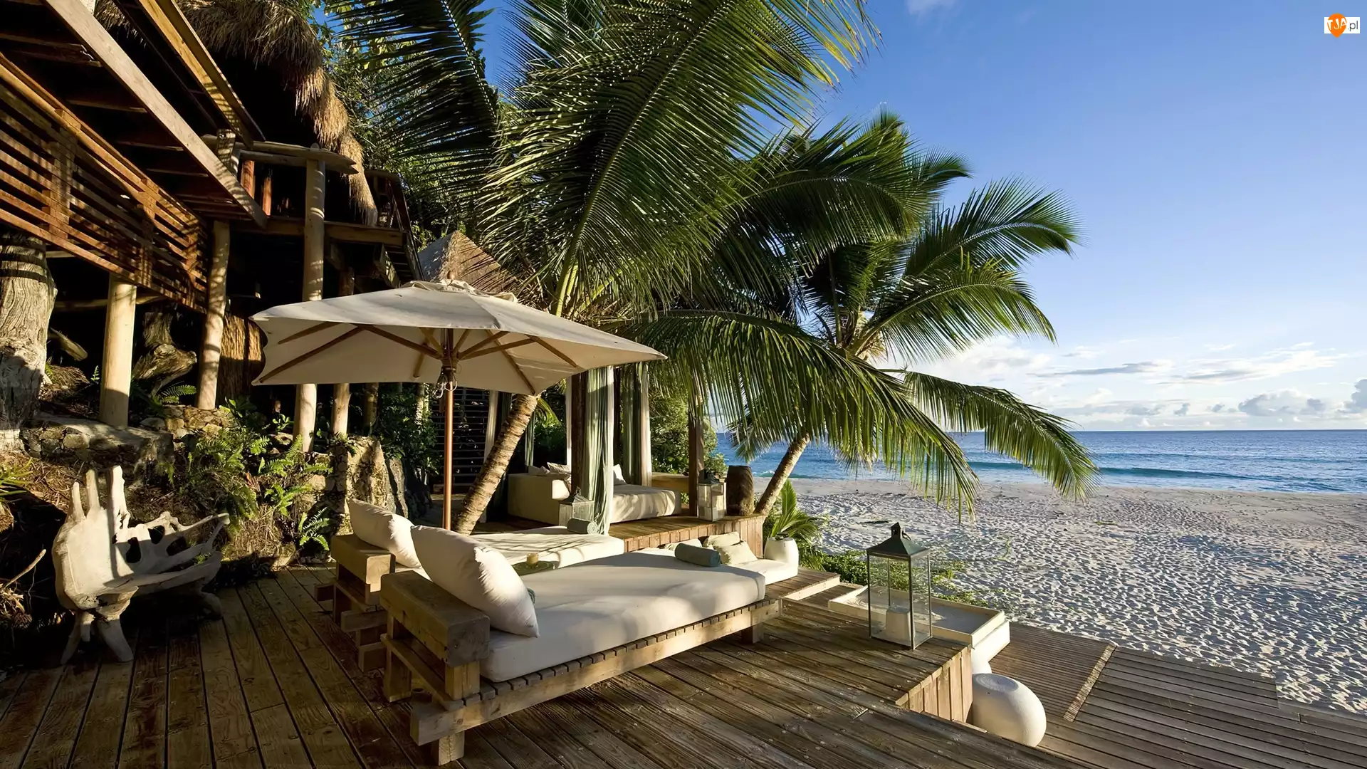 Palmy, Wakacje, Leżaki, Taras, Parasol