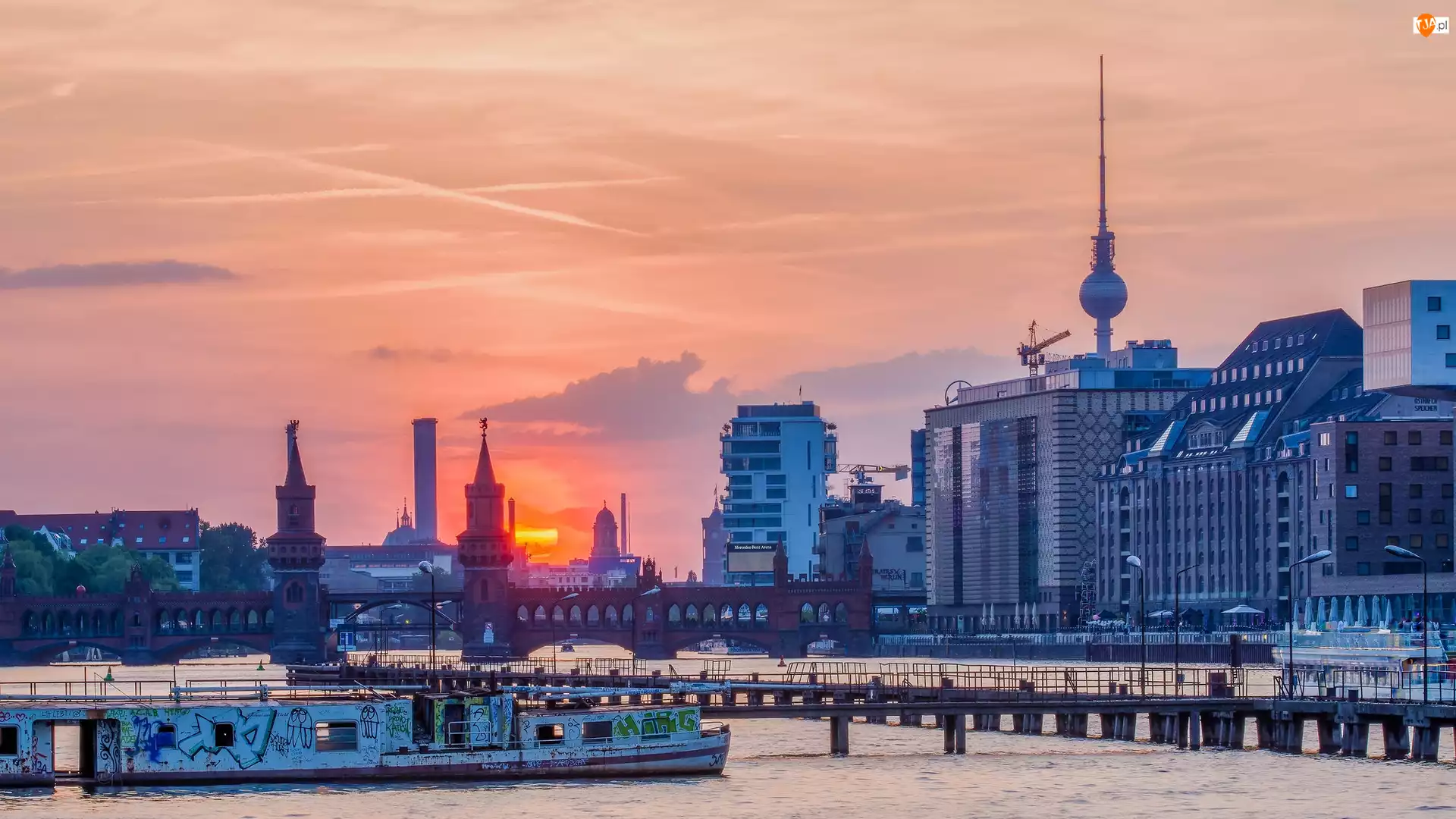 Domy, Berlin, Most Oberbaumbrucke, Rzeka Szprewa, Wieża telewizyjna