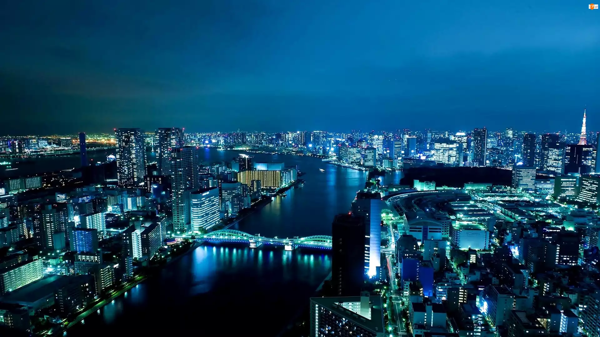Miasta, Chmur, Panorama, Tokio, Nocna, Rzeka, Sumida, Drapacze, Most