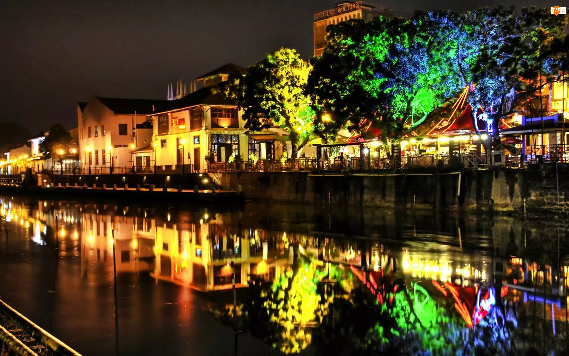 Panorama, Nocą, Malezja, Odbicie, Malakka, Miasta