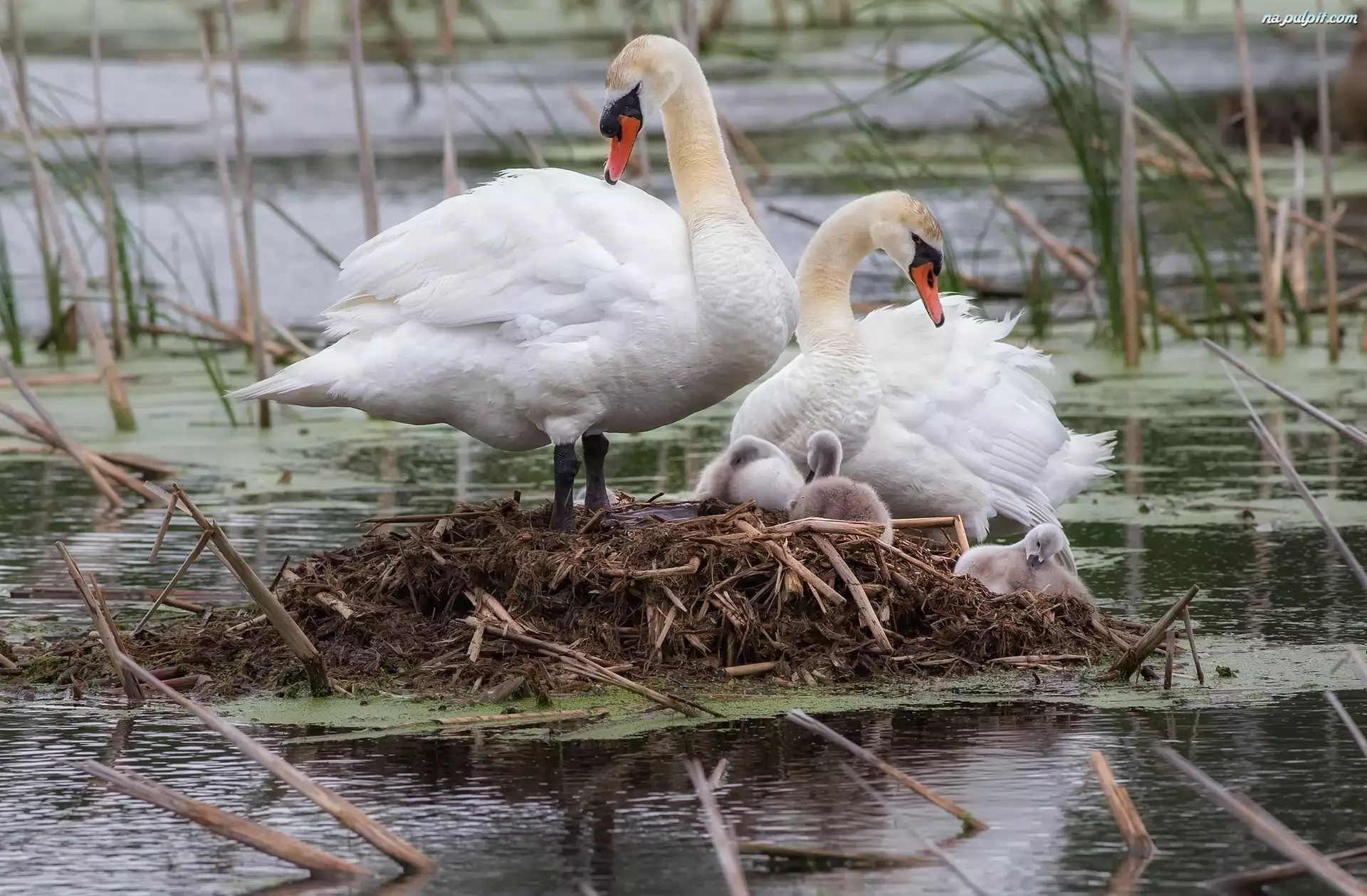 Para, Gniazdo, Łabędzi, Młode