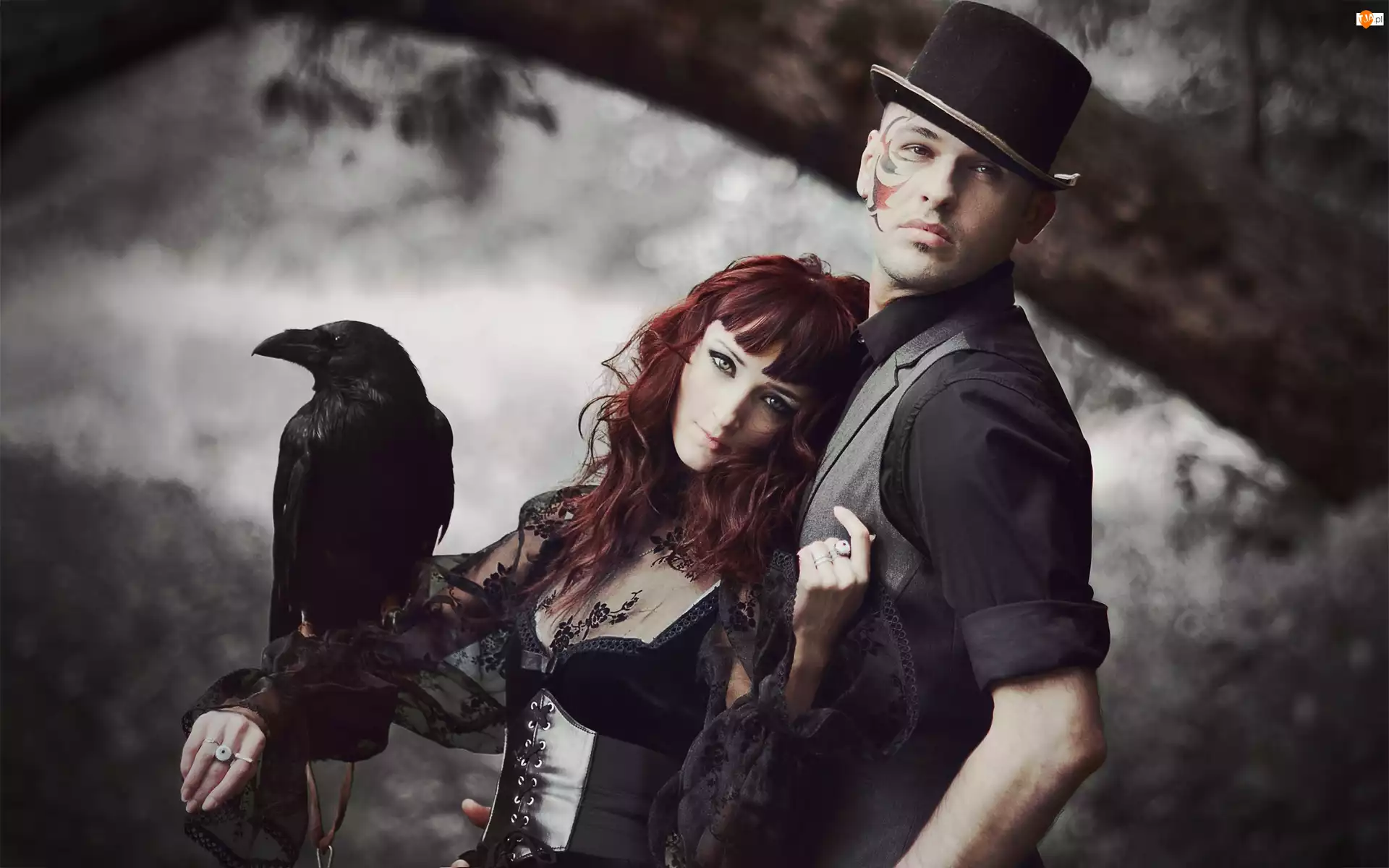 Para, Mężczyzna, Styl, Kruk, Gothic, Kobieta