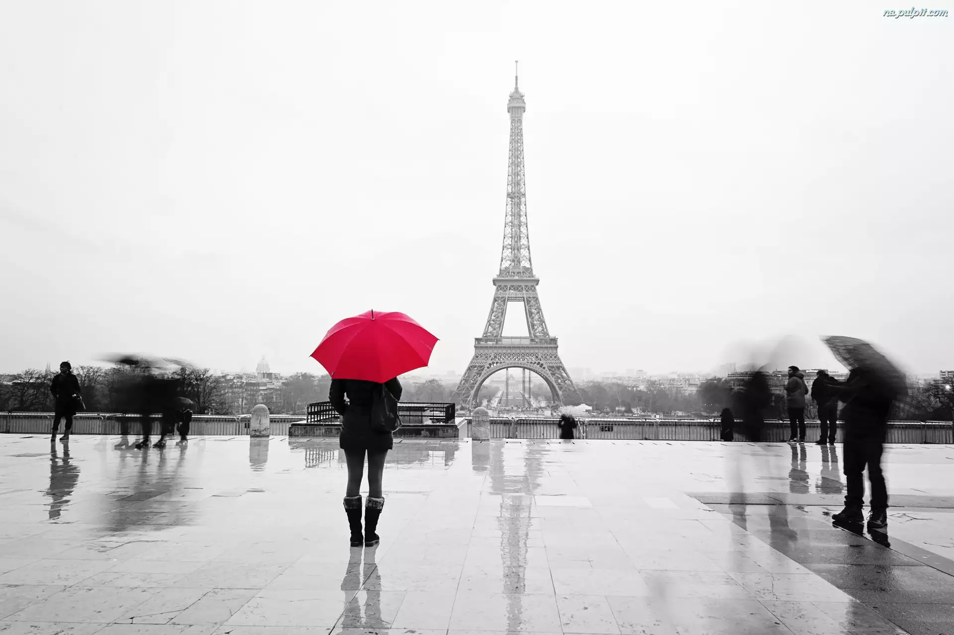 Parasole, Francja, Wieża Eiffla, Paryż, Ludzie