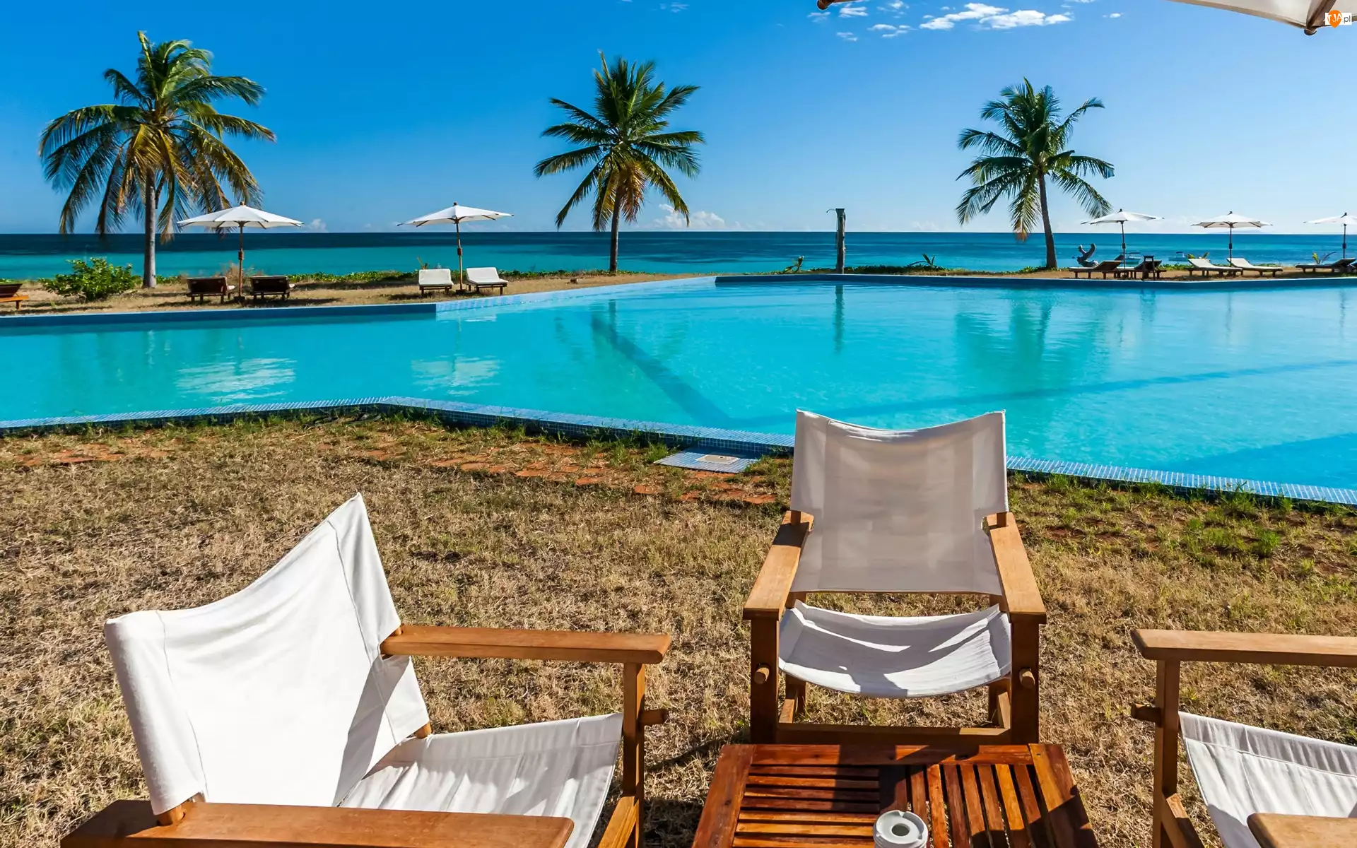Parasole, Morze, Basen, Tropiki, Palmy, Leżaki