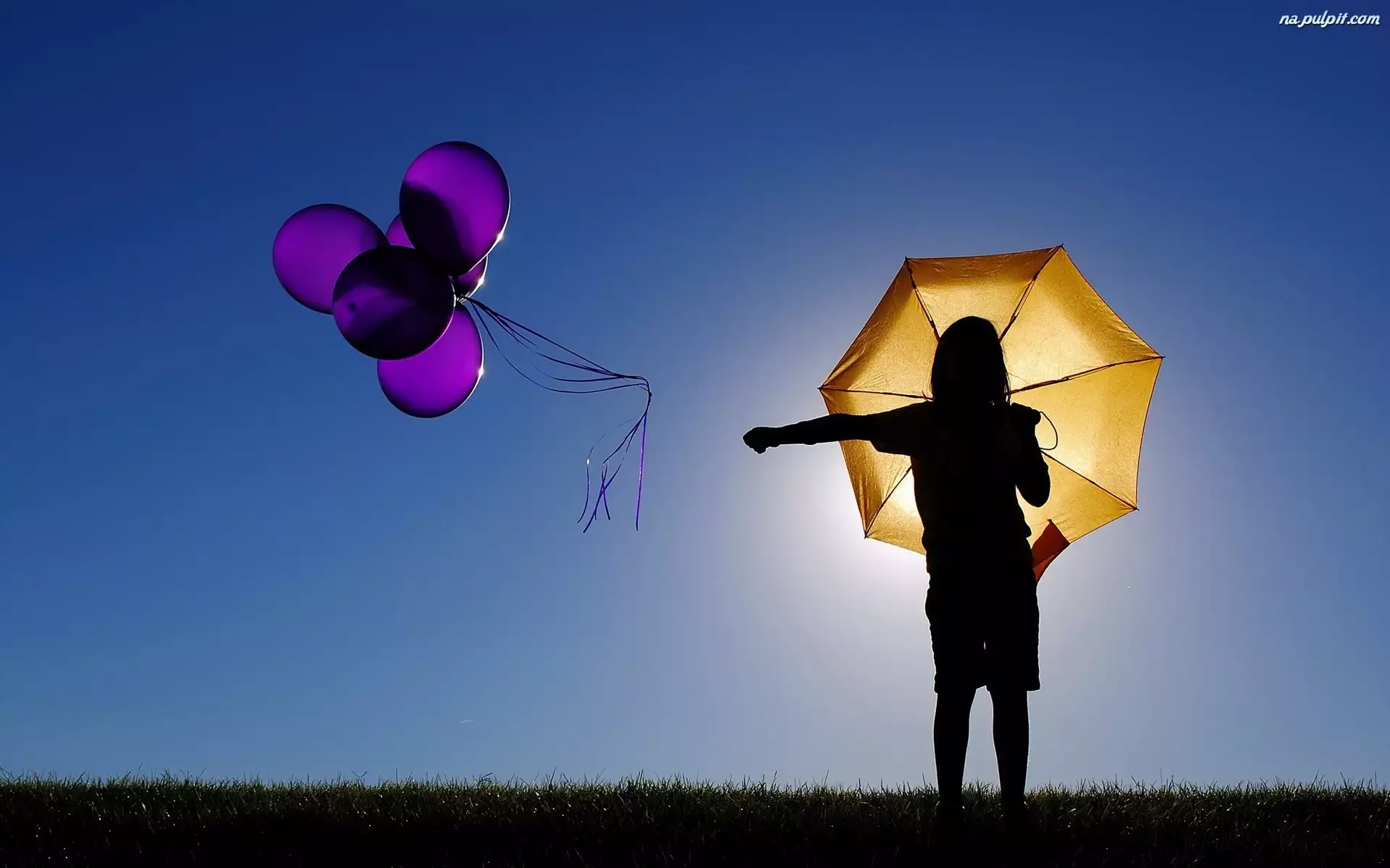 Parasolka, Dziewczynka, Różowe, Baloniki