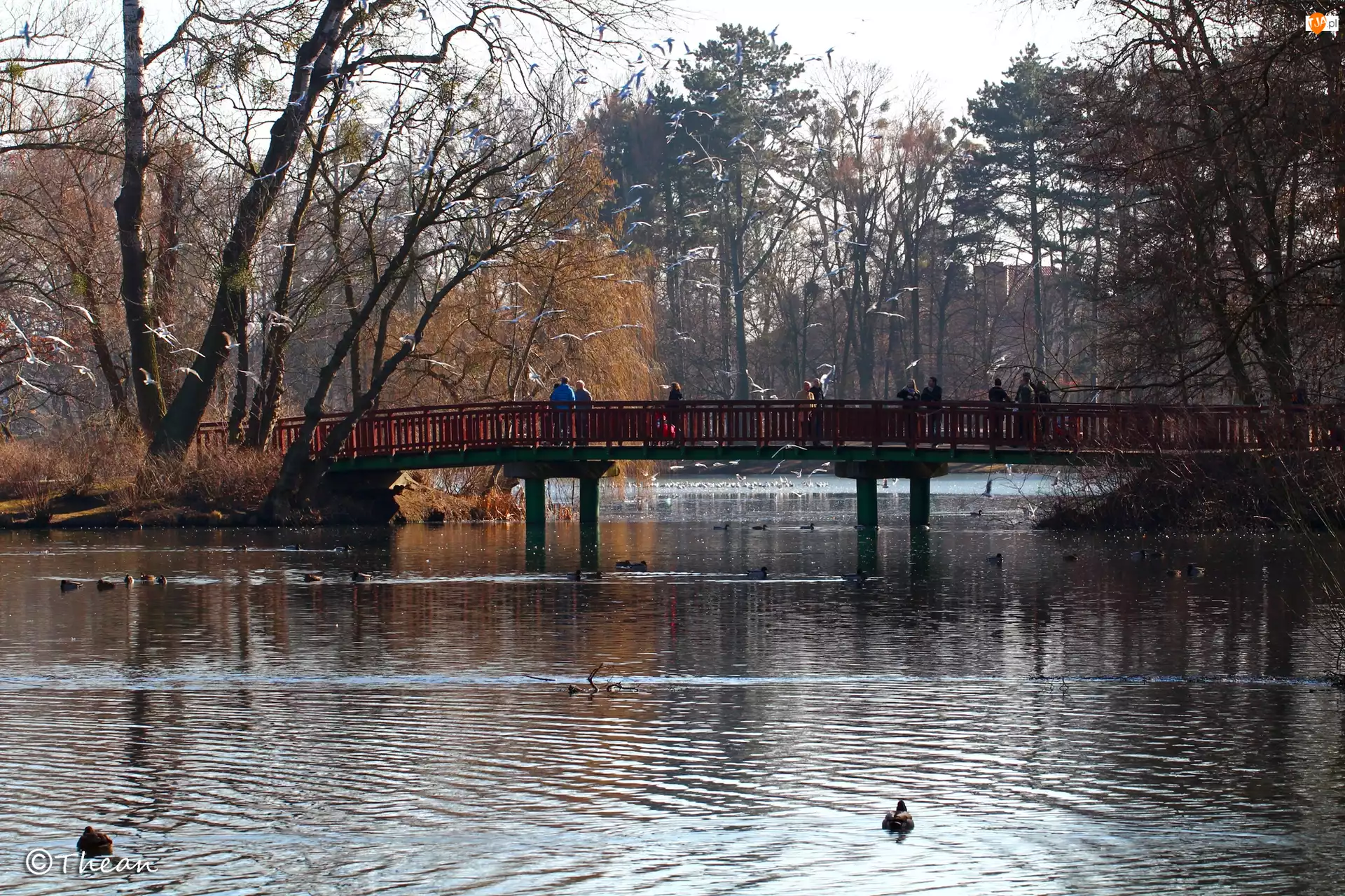 Park, Mewy, Jezioro, Most