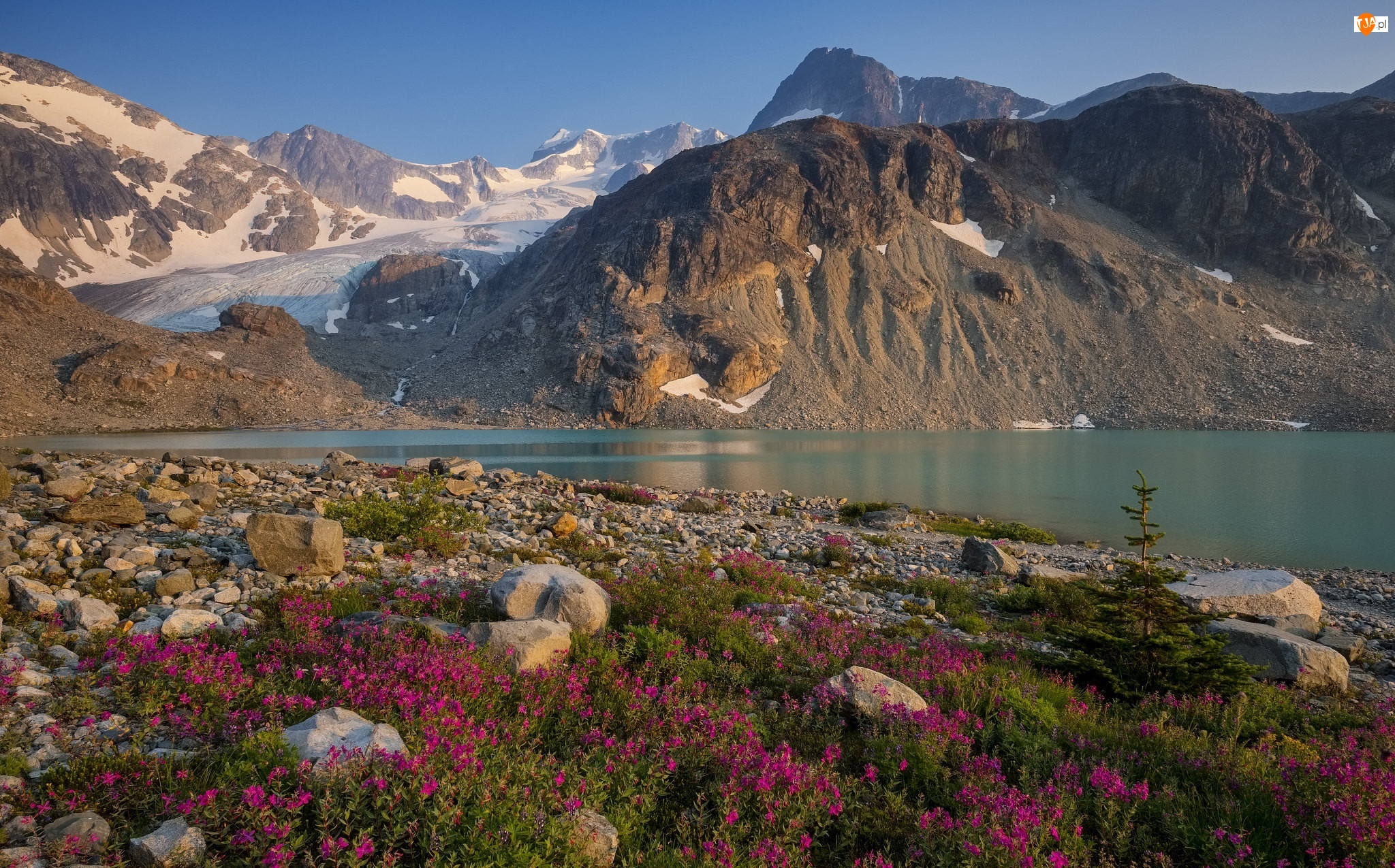 Park prowincjonalny Garibaldi, Góry, Kamienie, Kolumbia Brytyjska, Jezioro Wedgemount, Śnieg, Kanada, Kwiaty