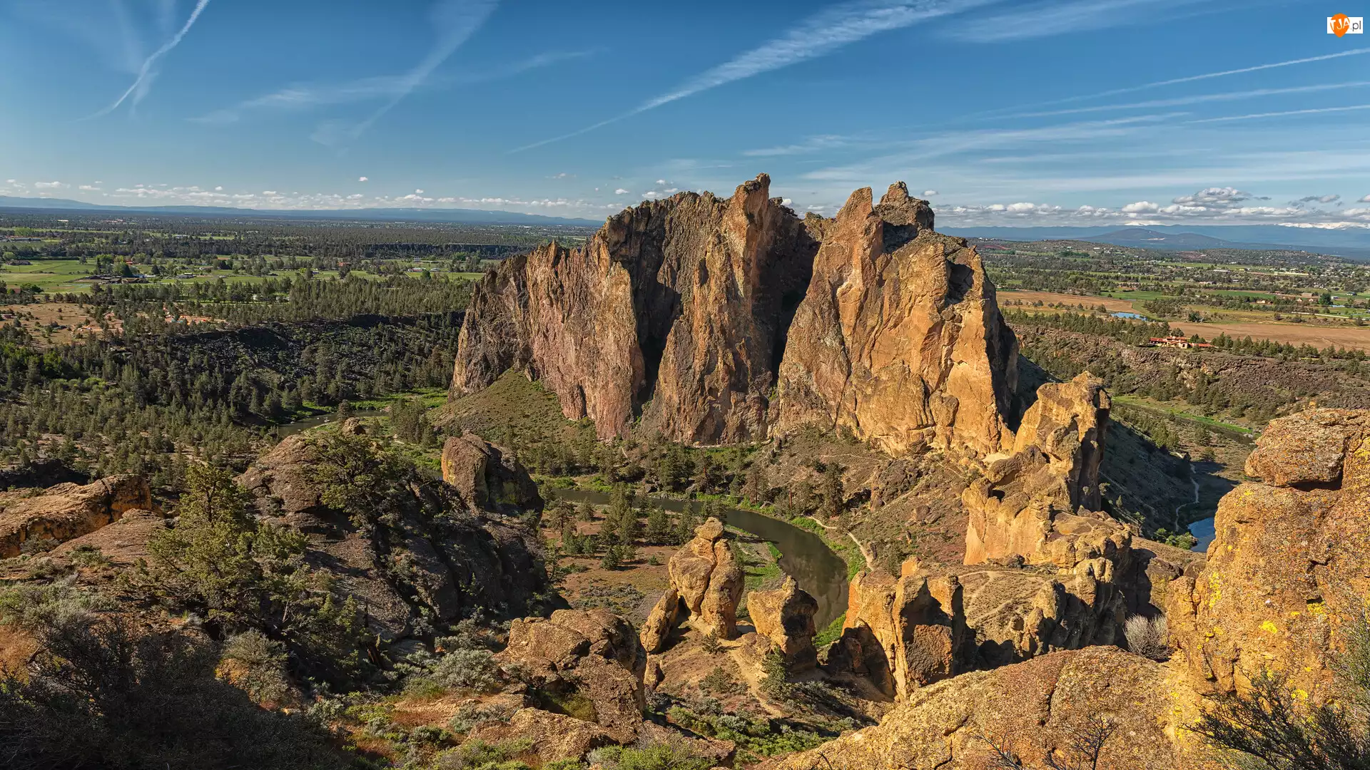 Stan Oregon, Park stanowy Smith Rock, Crooked River, Stany Zjednoczone, Rzeka, Skały, Góry