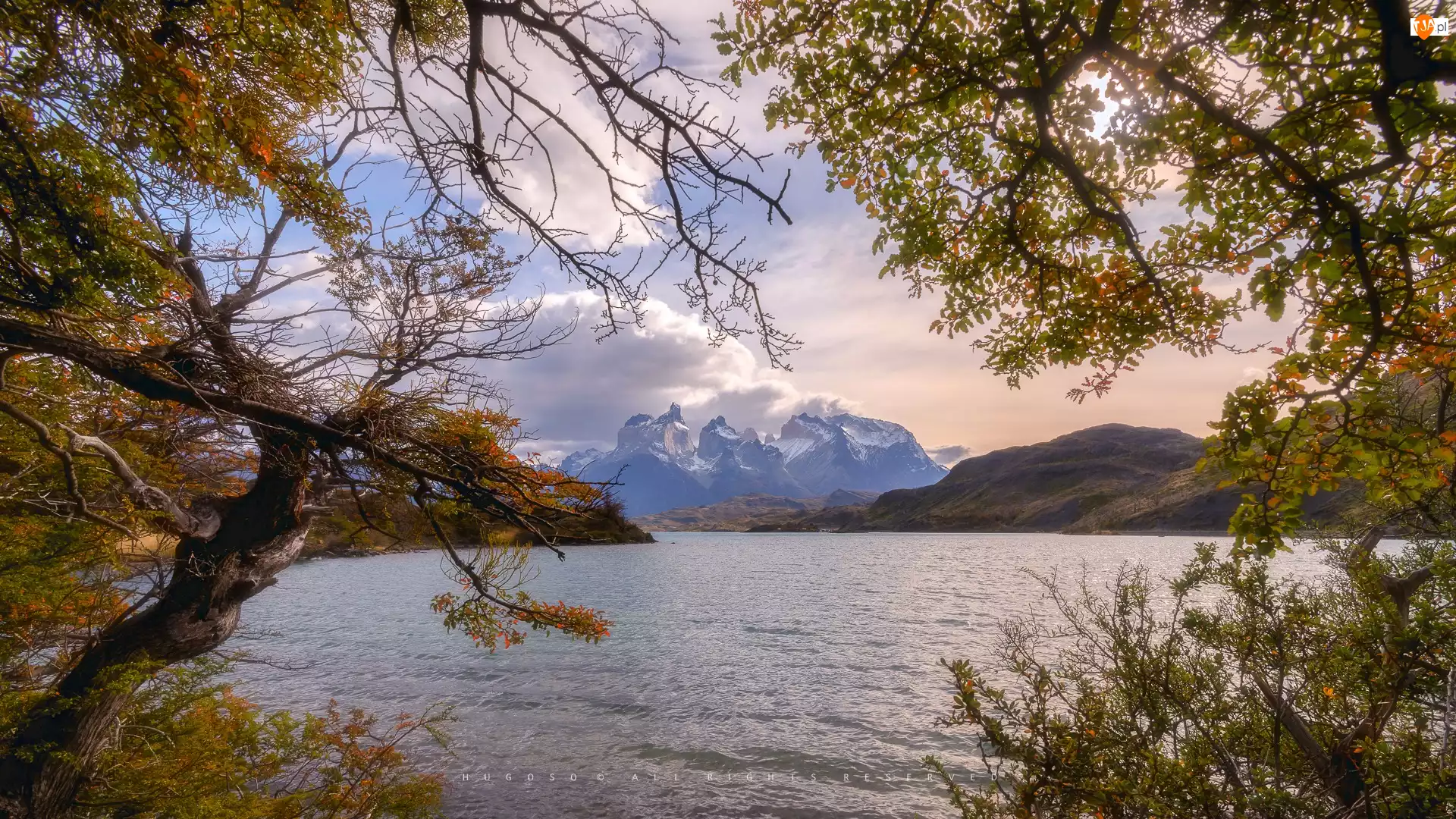 Patagonia, Chile, Góry, Drzewa, Park Narodowy Torres del Paine, Jezioro