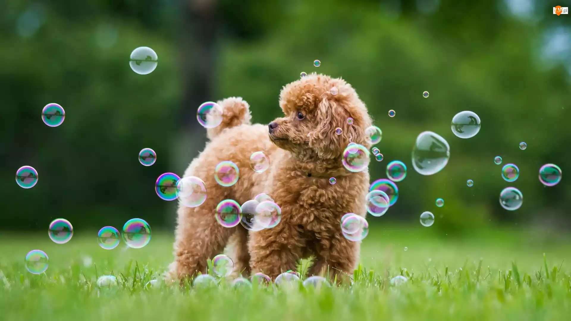 Bańki, Pies, Pudel, Trawa
