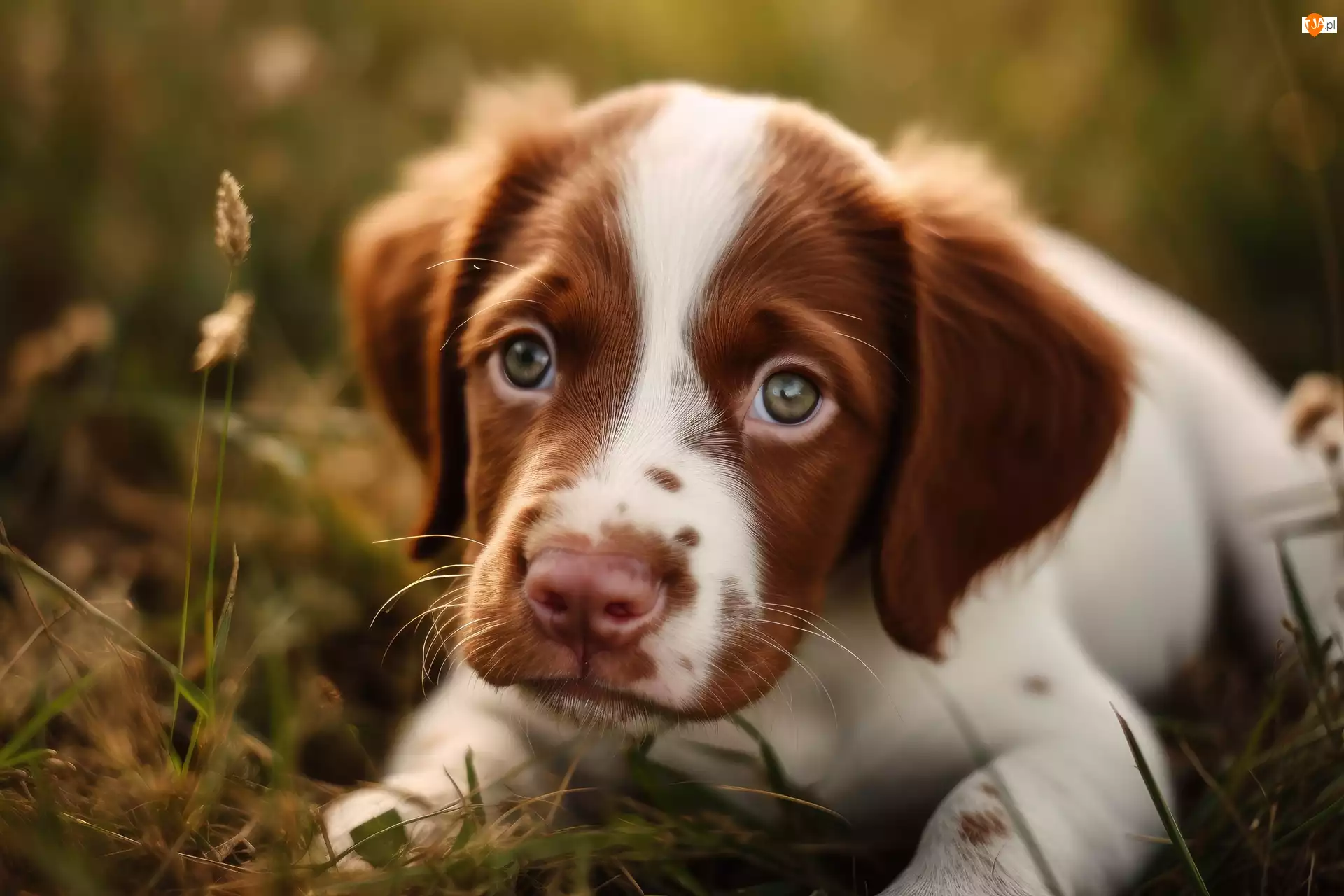 Pies, Leżący, Biało-brązowy