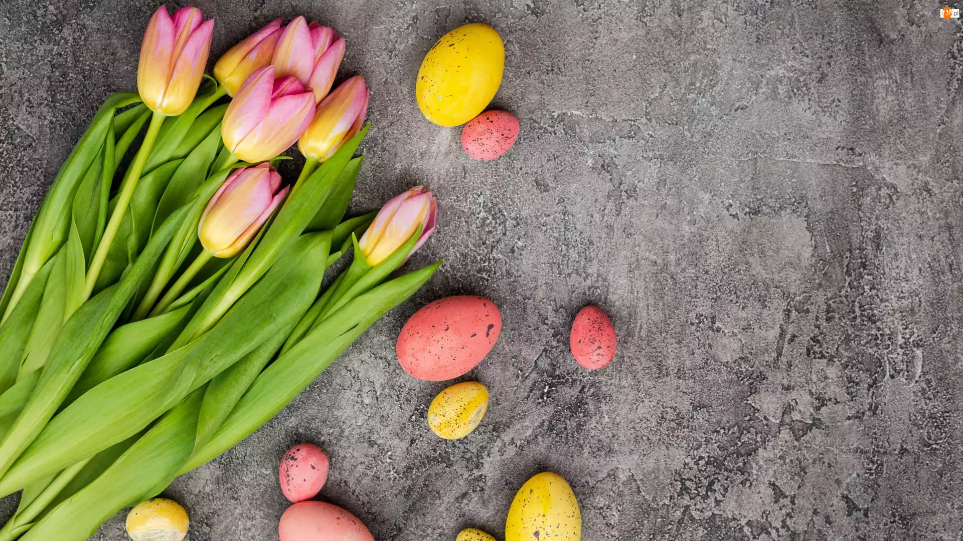 Kolorowe, Jajka, Wielkanoc, Tulipany, Tło, Szare, Pisanki