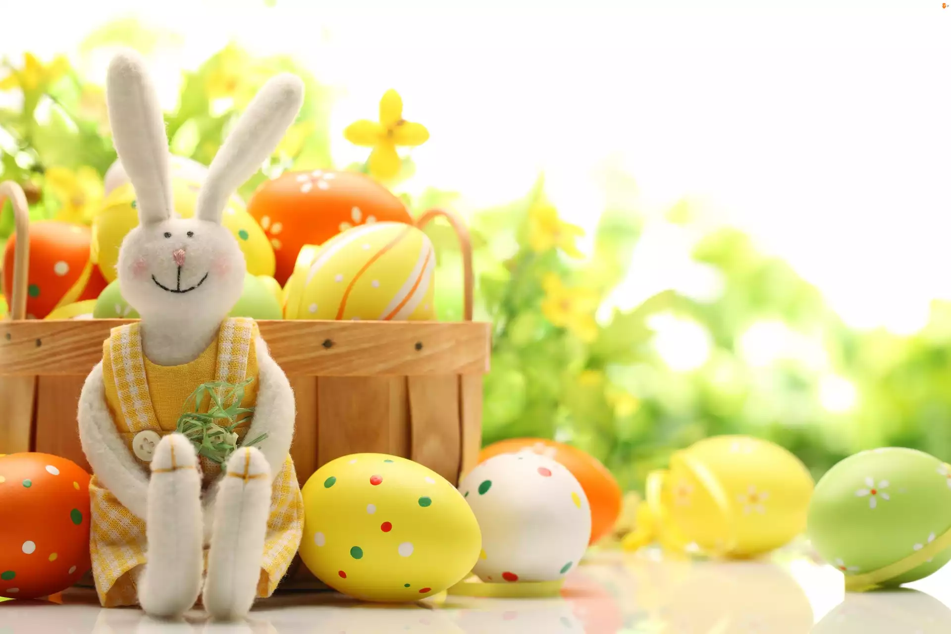 Pisanki, Rozmyte, Królik, Tło, Zabawka, Koszyk