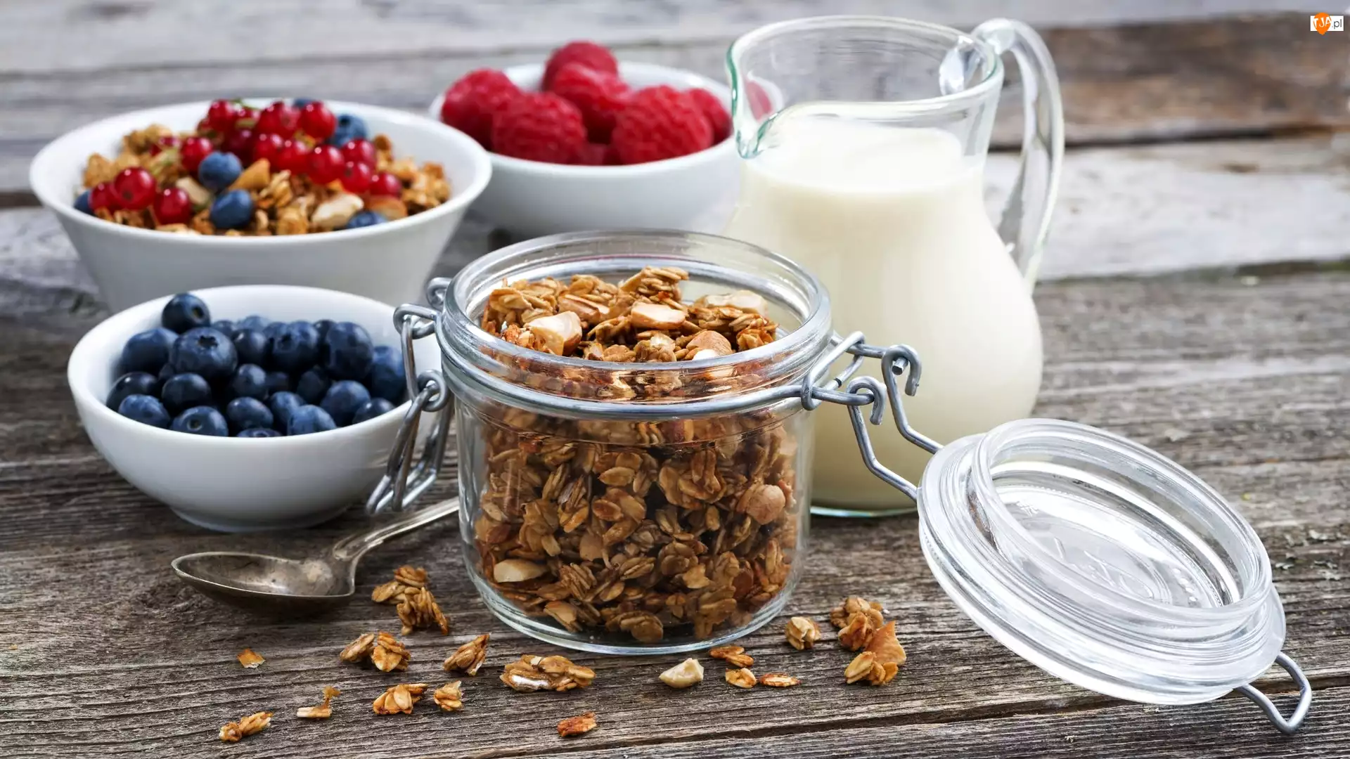 Płatki, Śniadanie, Maliny, Mleko, Owoce, Jagody