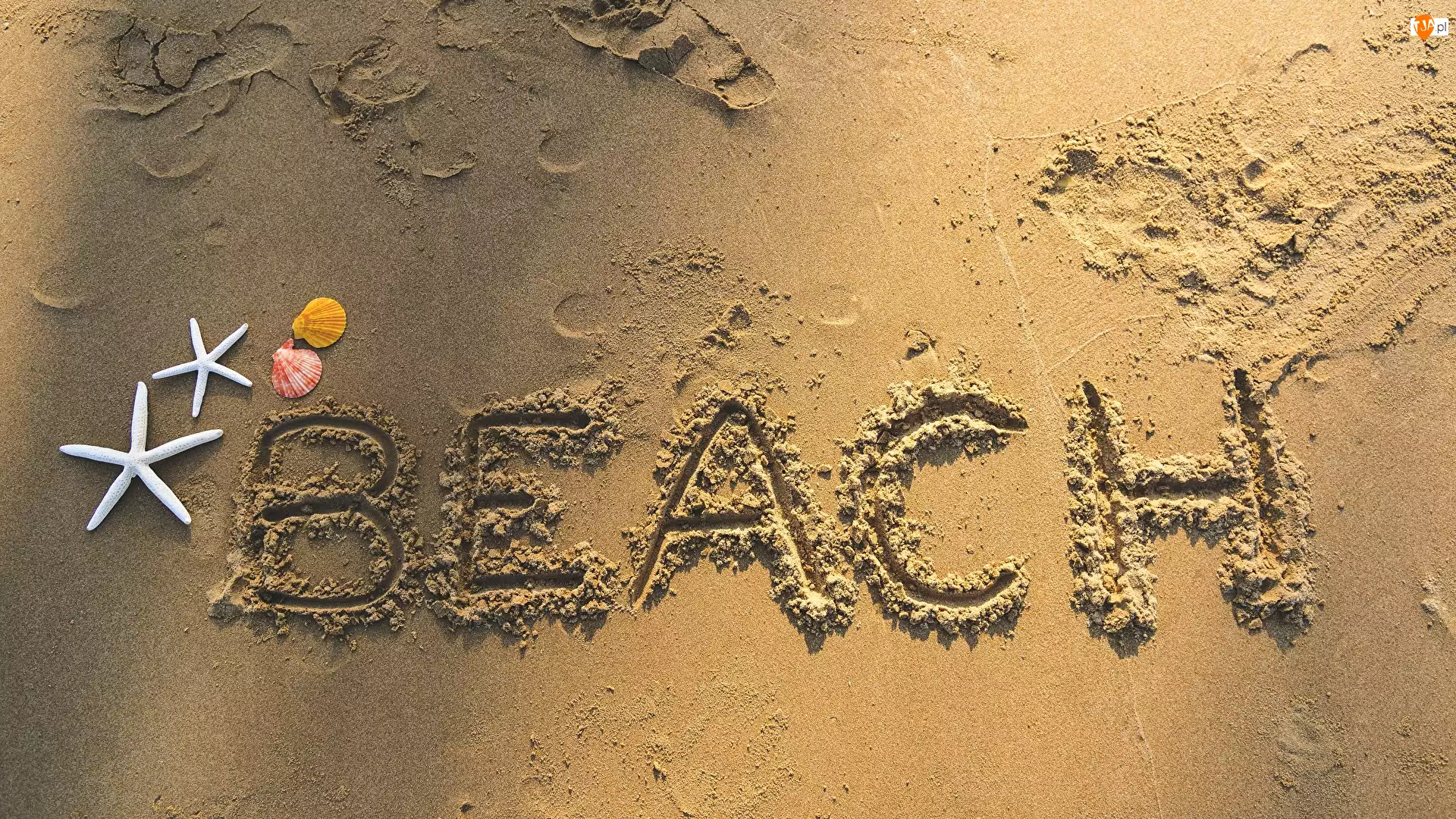 Muszelki, Beach, Rozgwiazdy, Plaża, Napis