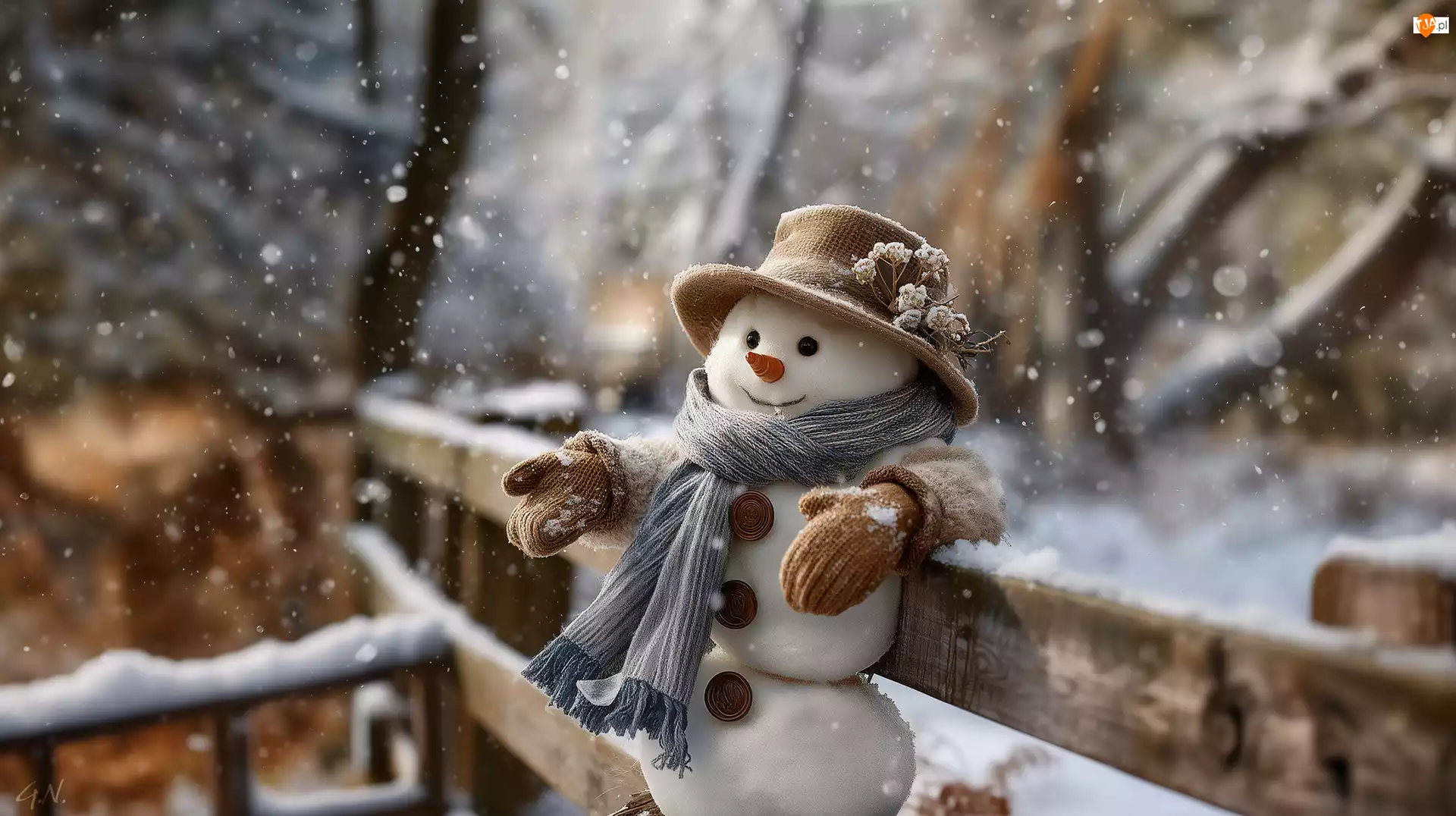 Płot, Bałwan, Szal, Grafika AI, Kapelusz, Zima