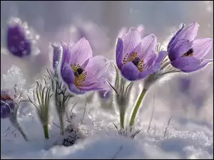 Kępka, Grafika AI, Sasanki, Fioletowe, Śnieg