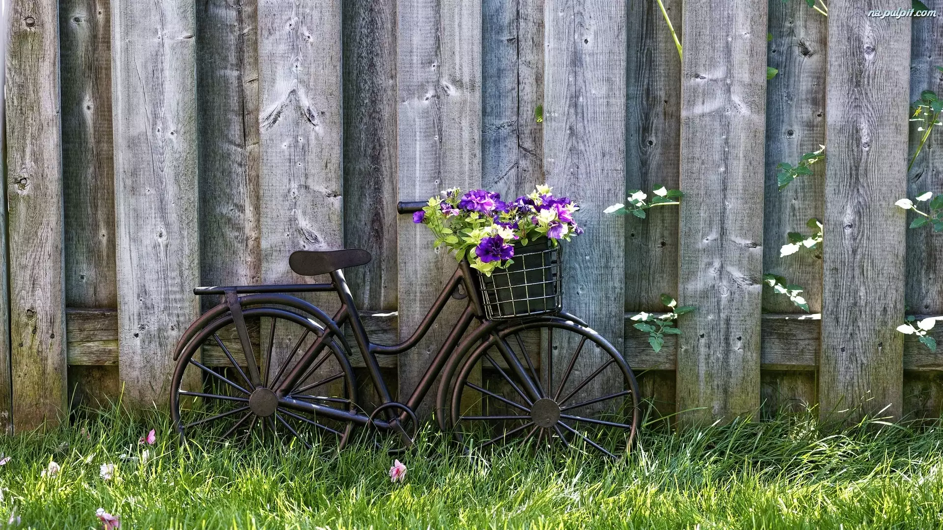 Płot, Rower, Kosz, Kwiaty