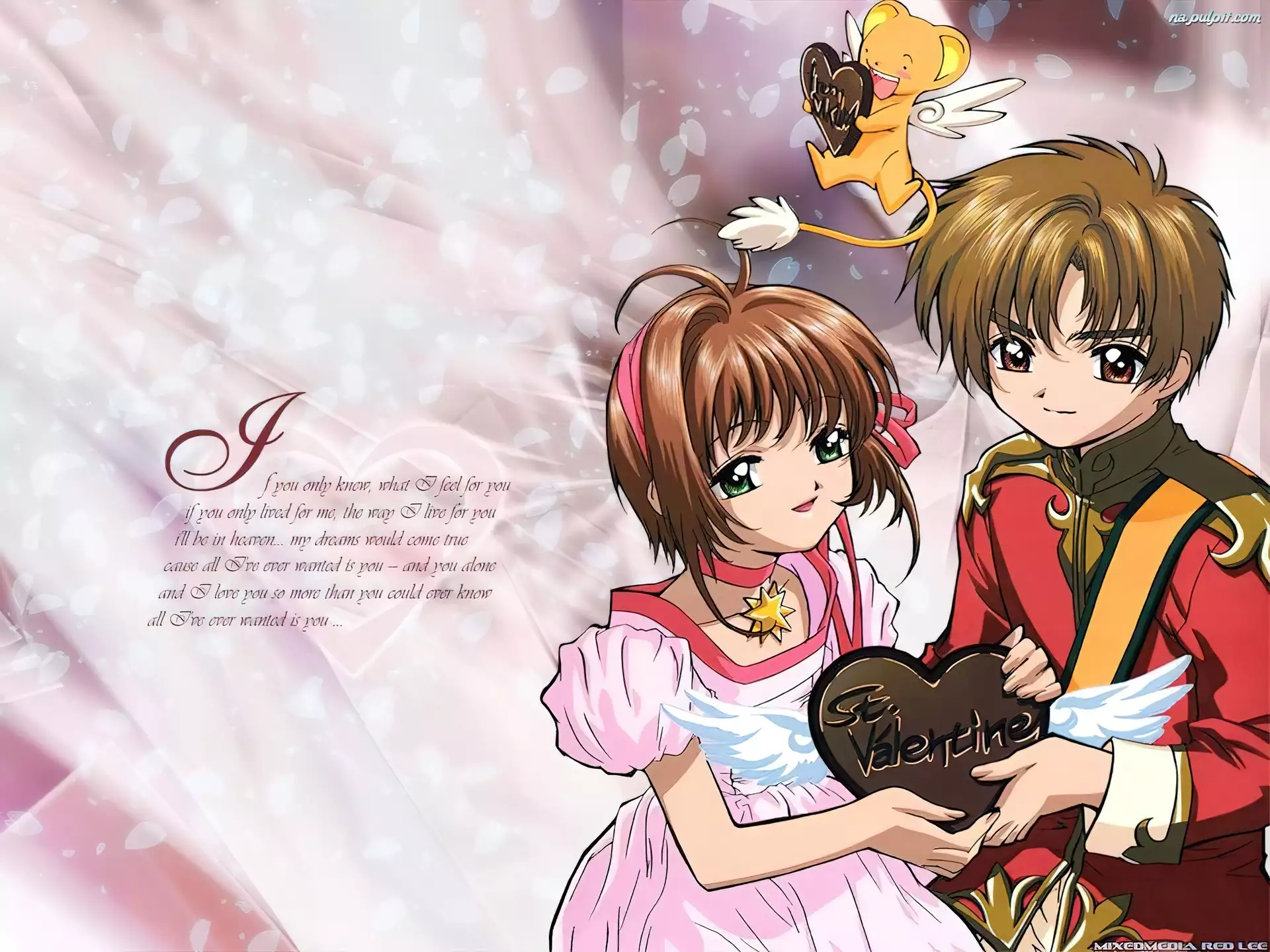 pluszak, napisy, para, Cardcaptor Sakura, skrzydełka, ludzie, serce