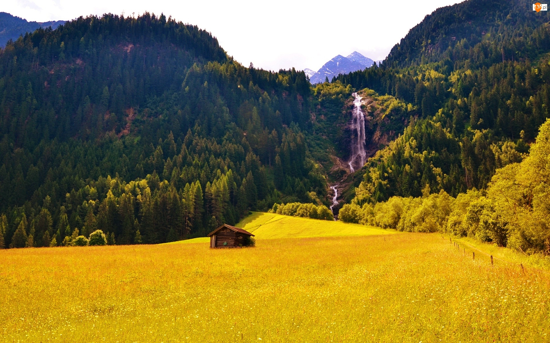 Domek, Pola, Góry, Wodospad