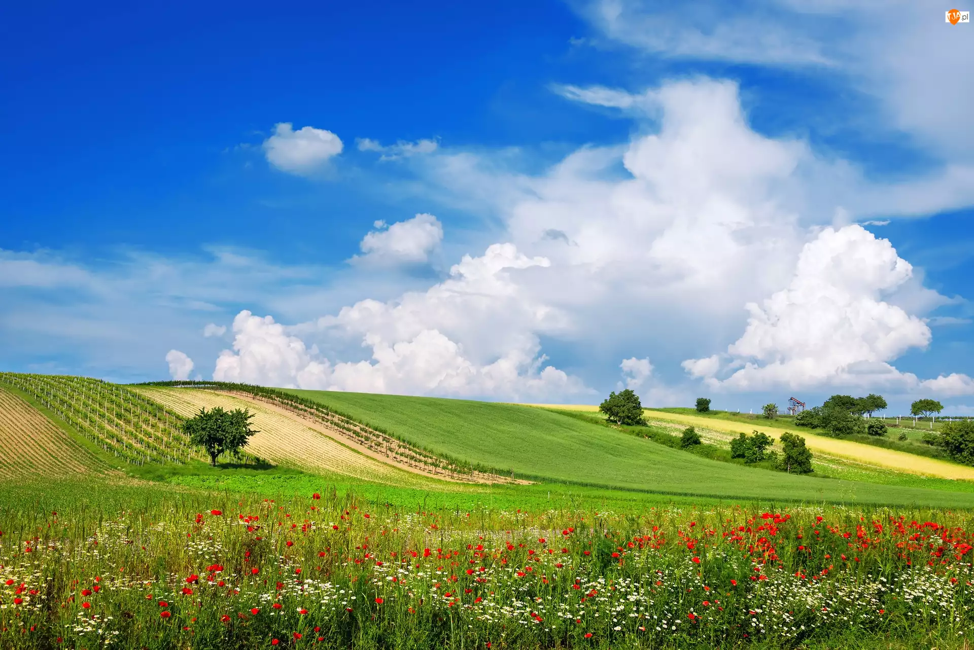pola, łąka, maki