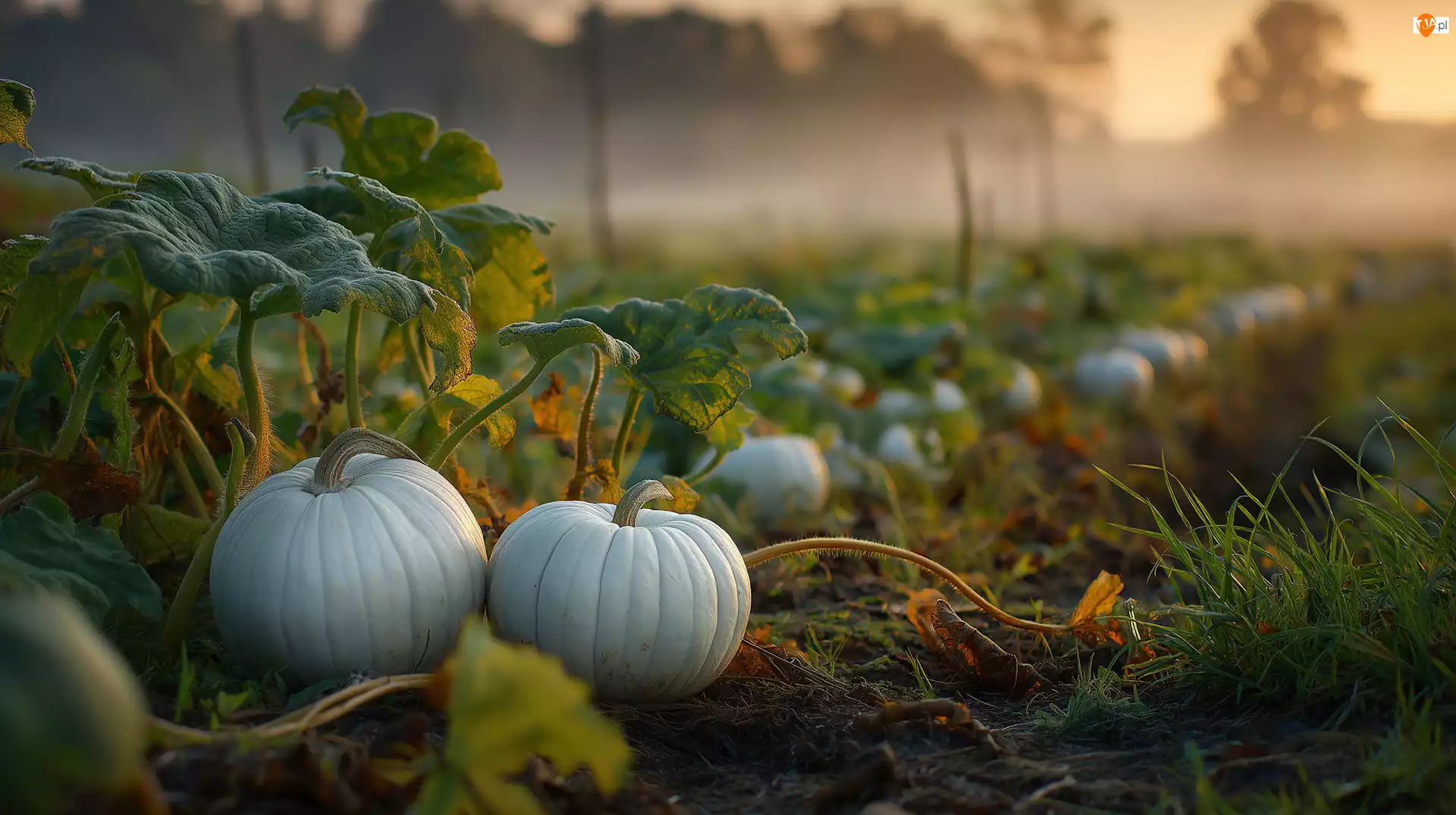 Pole, Grafika AI, Dynie, Białe, Mgła