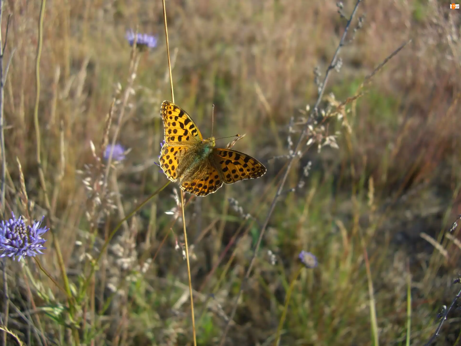 Polne, Motyl, Trawy, Łąka, Kwiaty