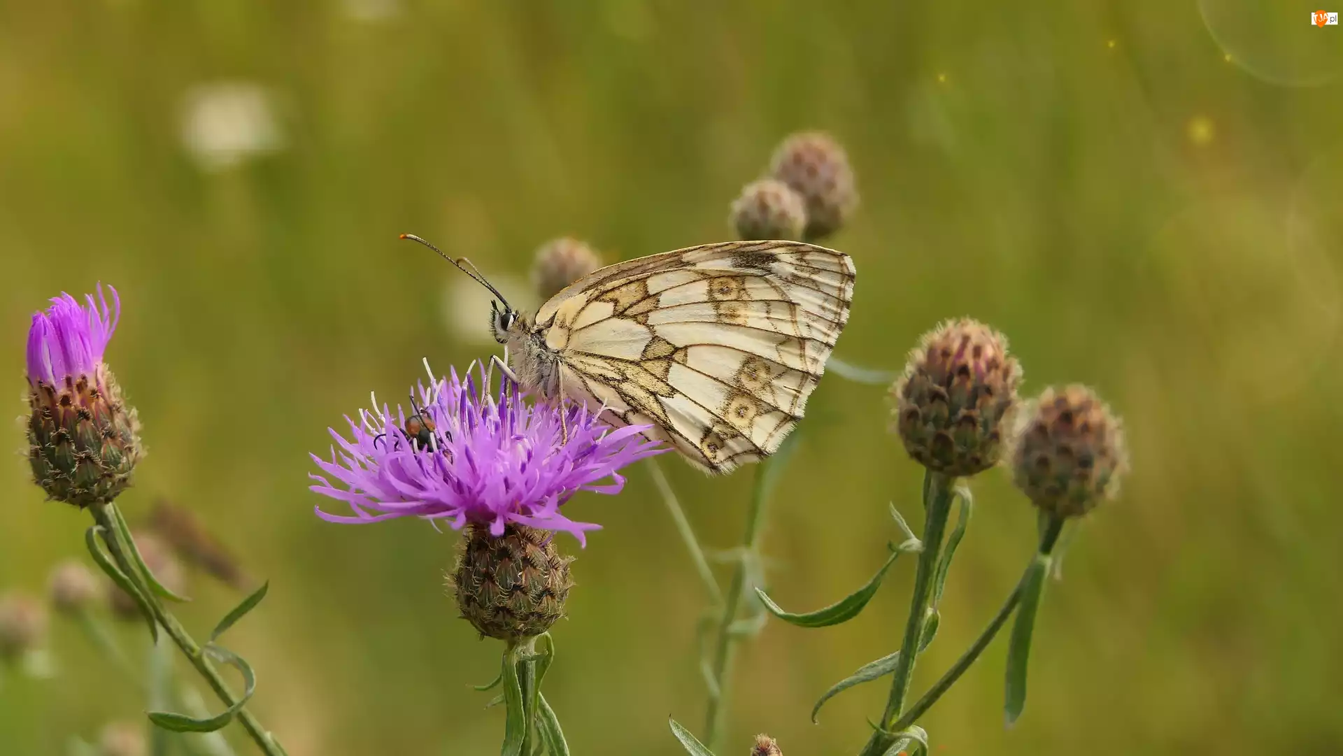 Chaber driakiewnik, Motyl, Polowiec szachownica, Kwiat