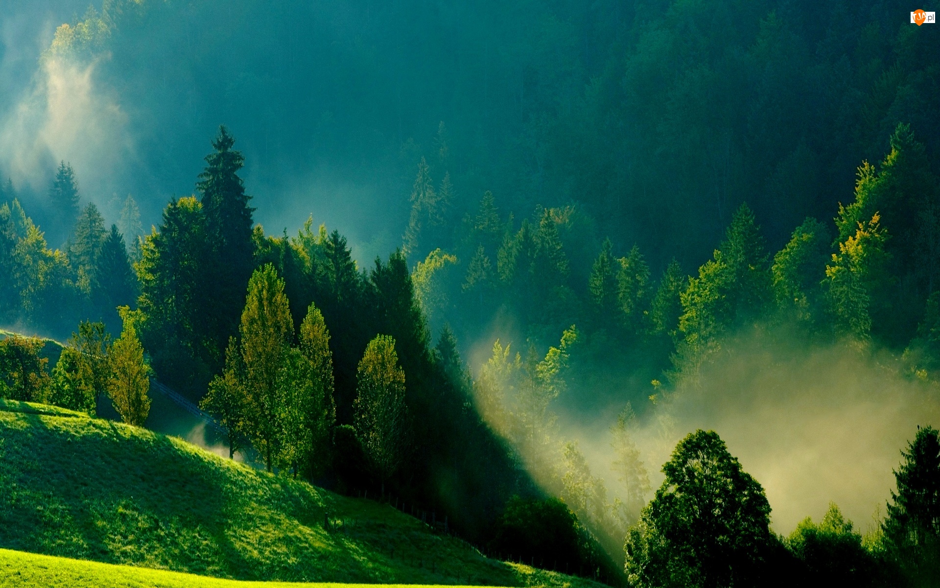 Poranna, Wzgórza, Mgła, Zielone