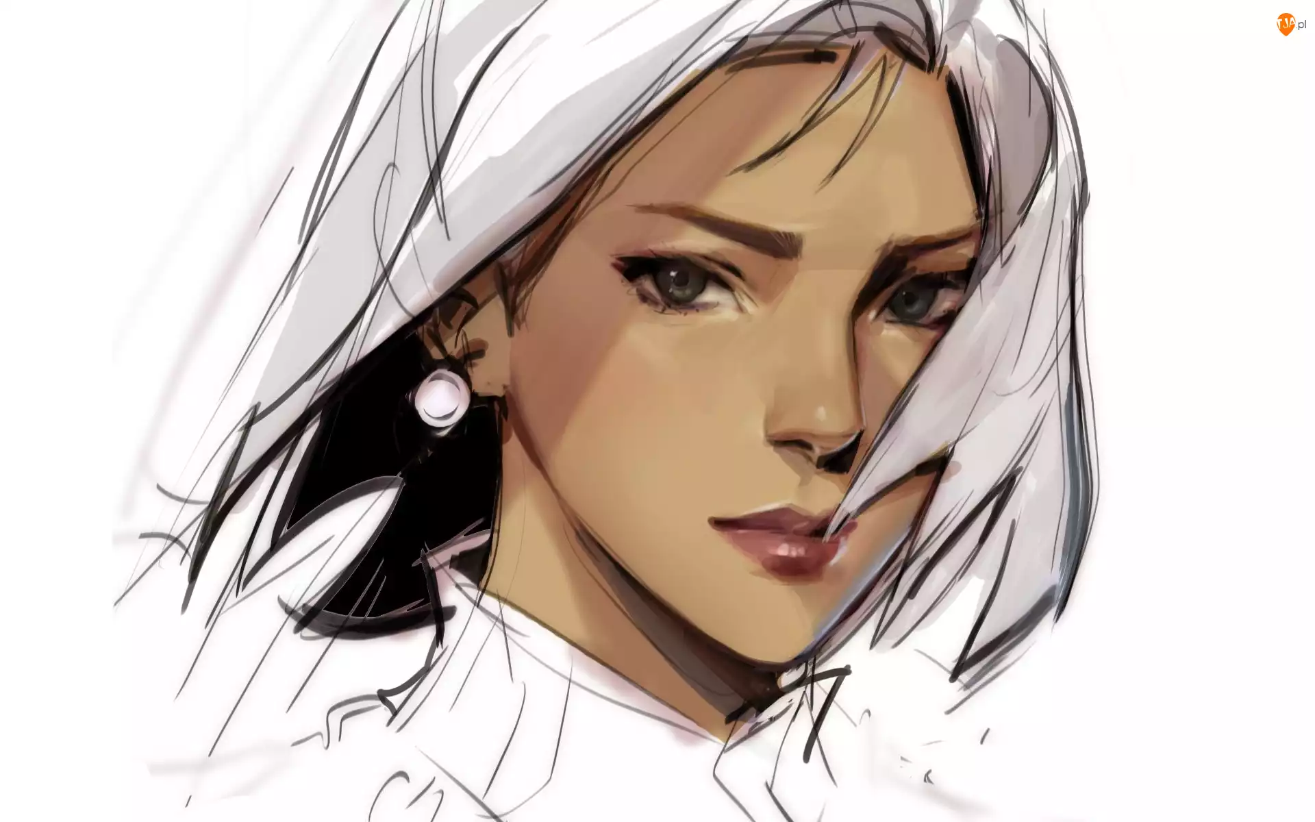 Grafika, Dziewczyna, Twarz, Kolczyk