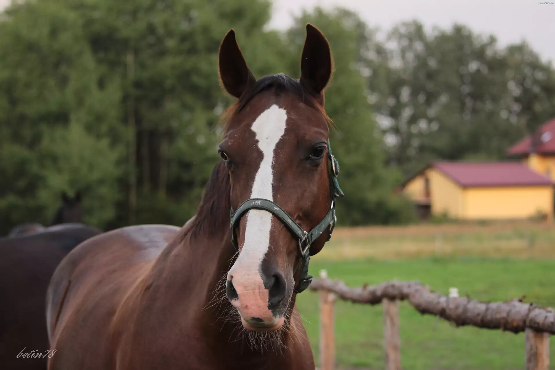Portret, Koń, Kasztan, Klacz, Pastwisko