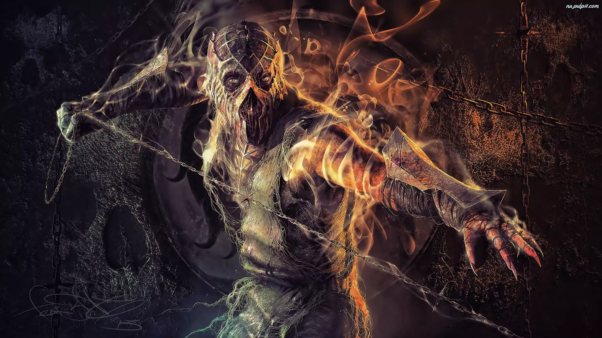 Mortal Kombat, Postać, Łańcuchy, Gra, Ogień, Wojownik, Smoke