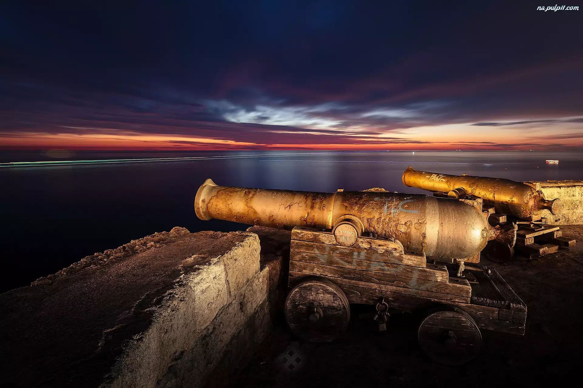 Zamek, Fort, Miejscowość Monopoli, Armaty, Region Apulia, Mury obronne, Włochy, Bastione Santa Maria, Morze Śródziemne, Castello di Monopoli