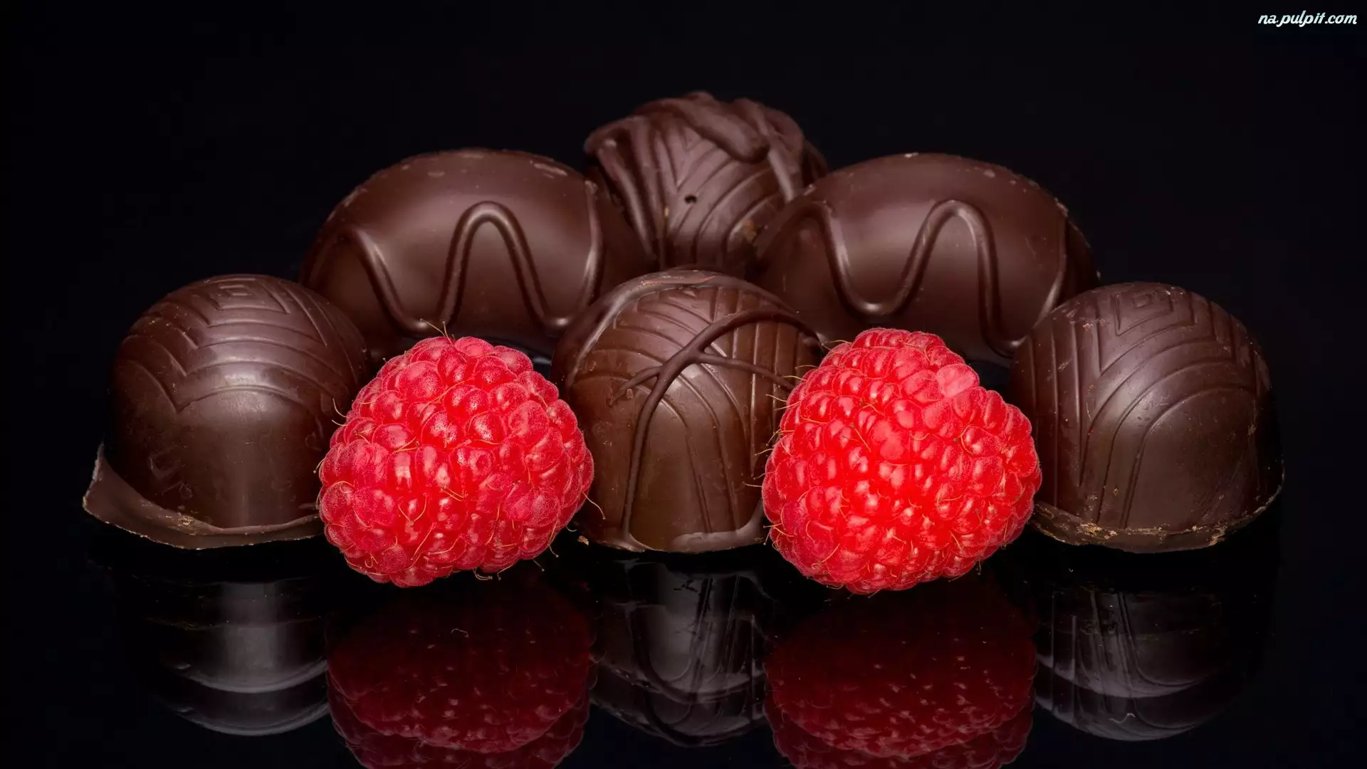 Maliny, Lustrzane, Czekoladowe, Pralinki, Odbicie
