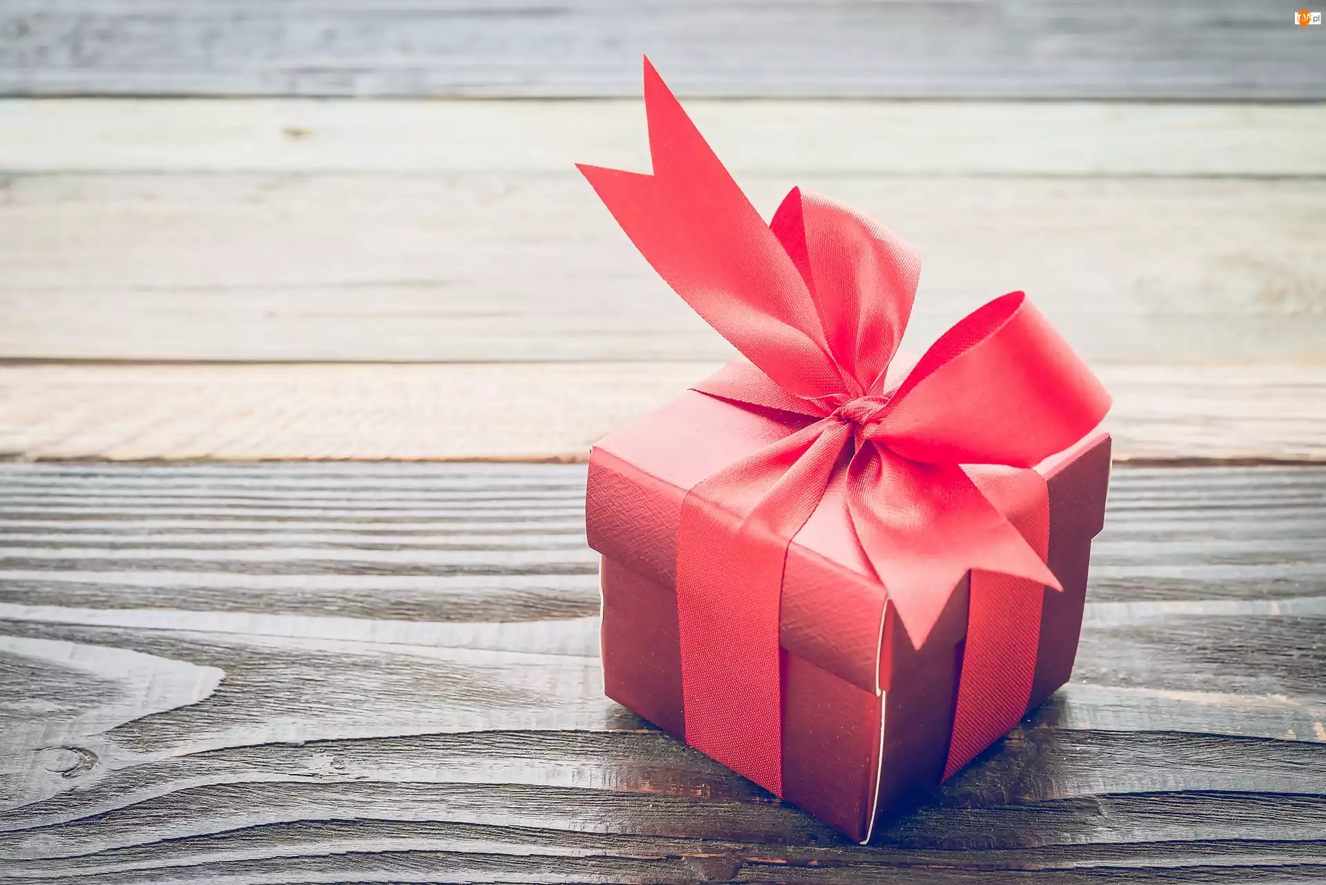 Deski, Prezent, Czerwona, Wstążka