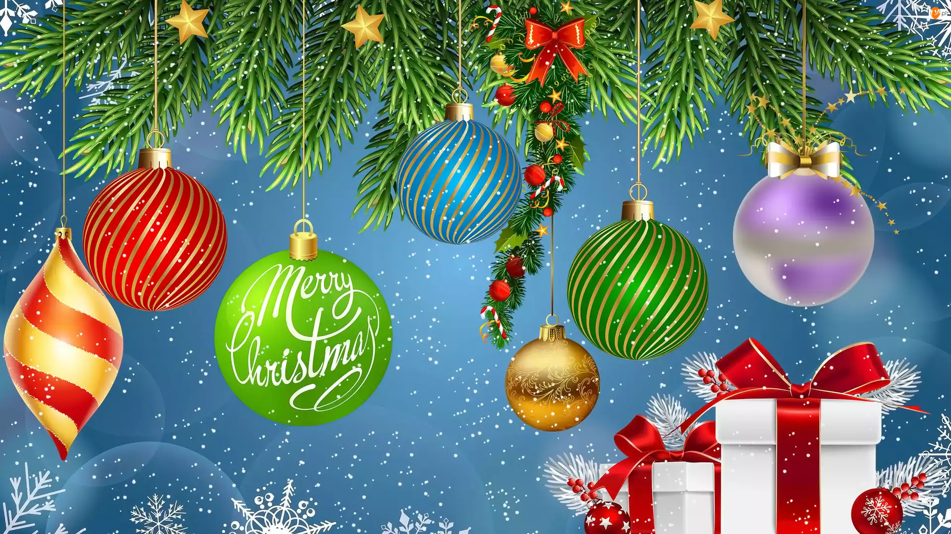 Prezenty, 2D, Bombki, Boże Narodzenie, Grafika