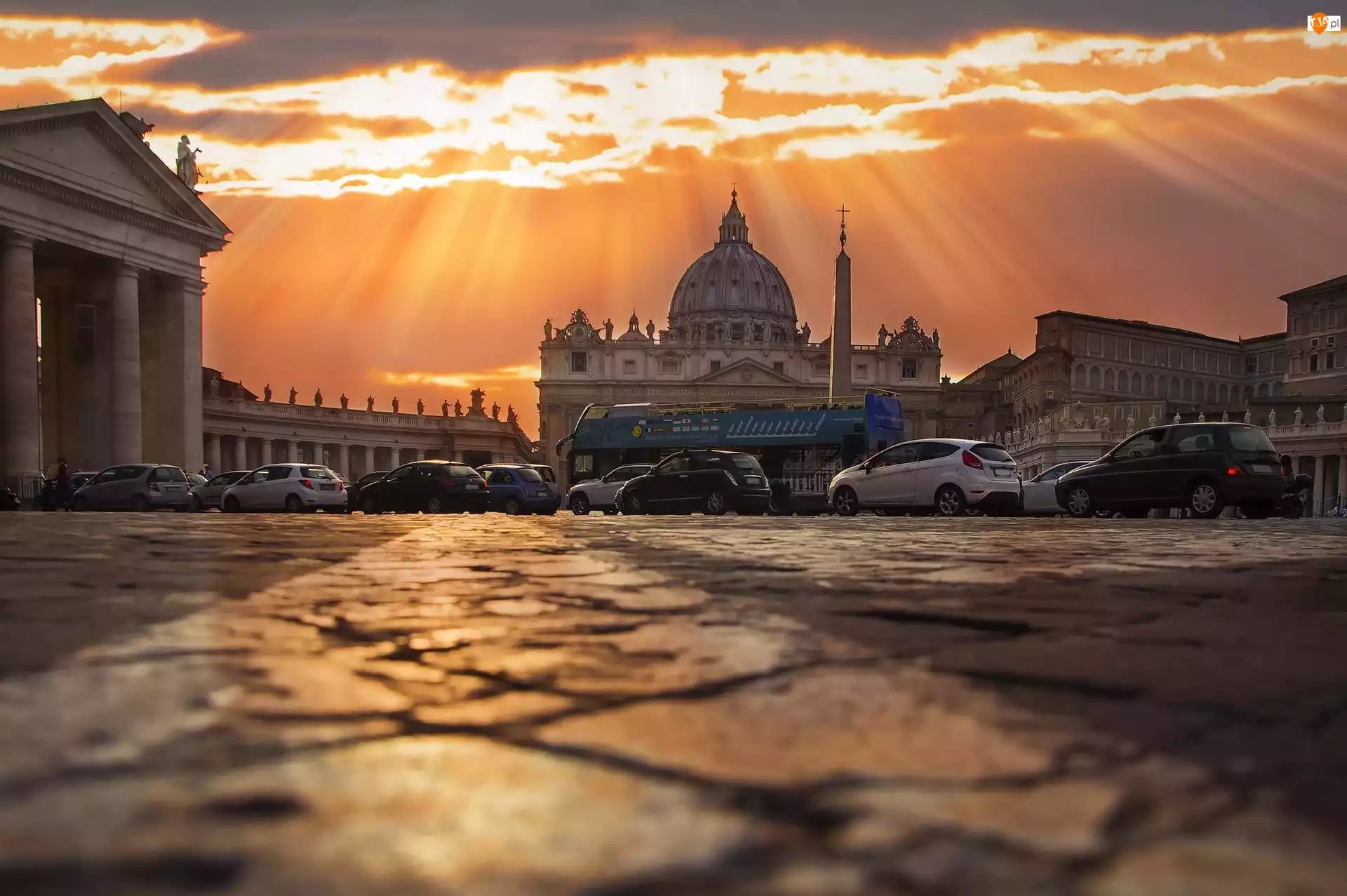 Promienie, Budynki, Słońca, Samochody