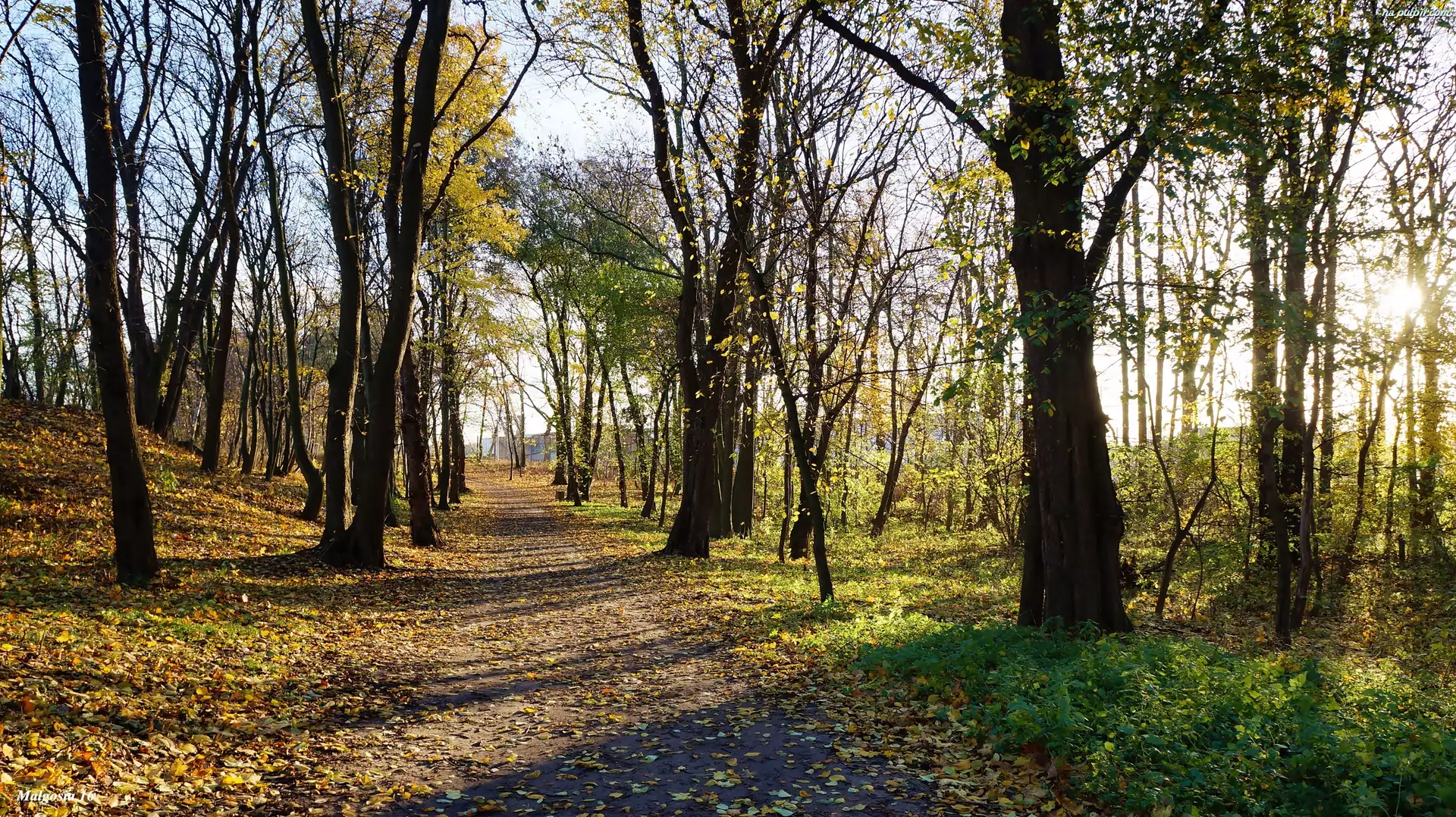 Przebijające Światło, Park, Drzewa, Droga, Jesień