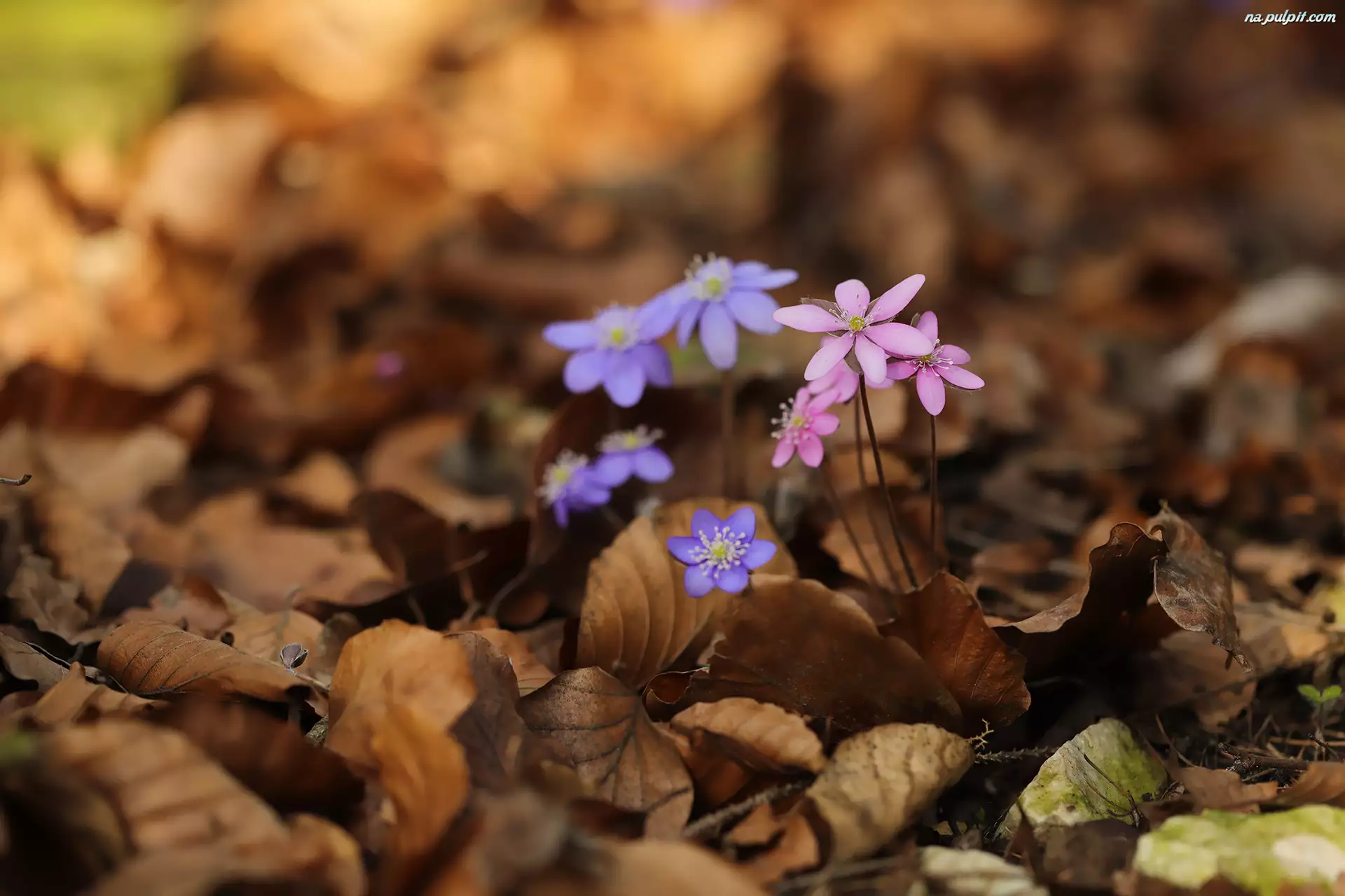 Kwiaty, Liście, Przylaszczki, Różowe, Suche