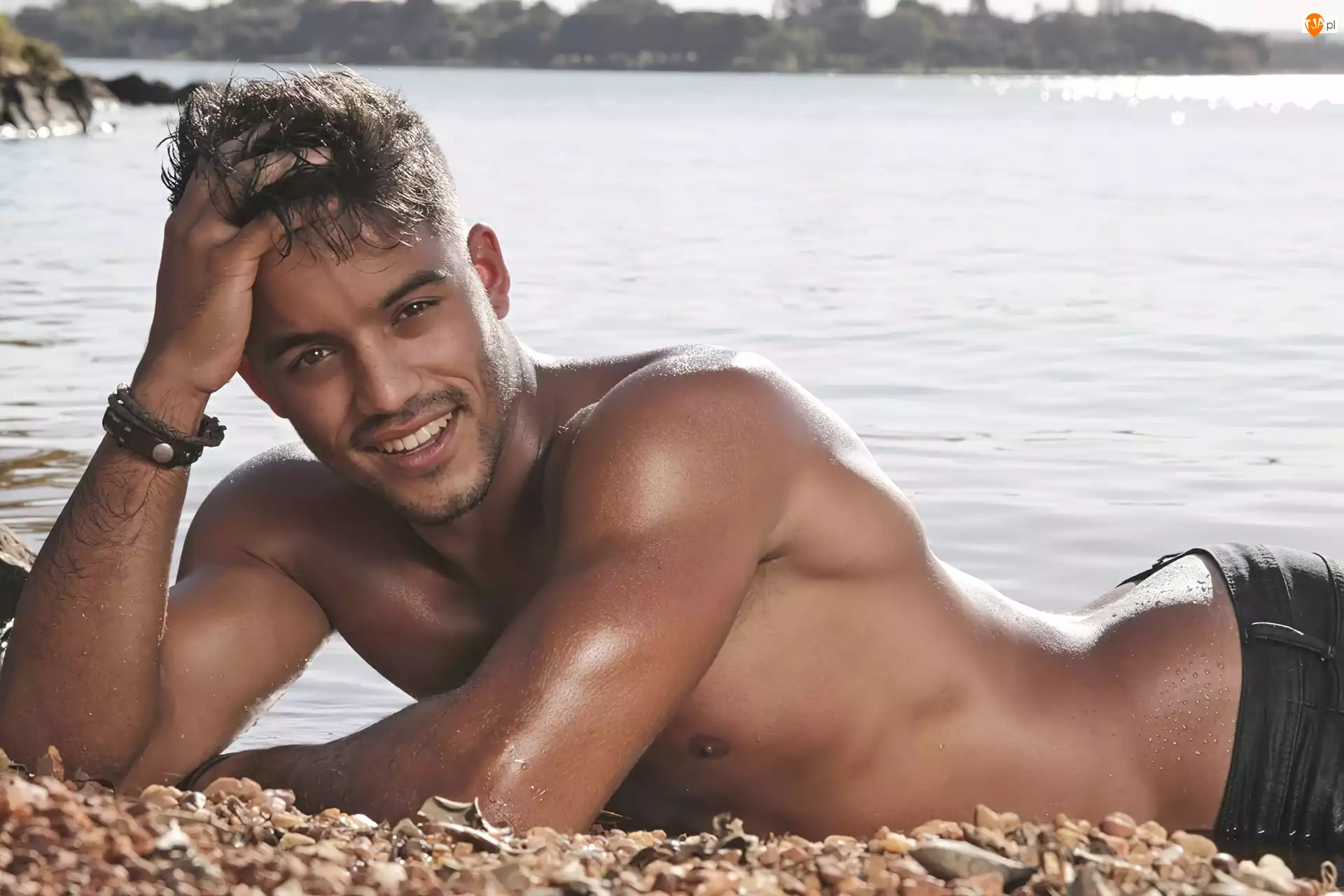 Przystojny, Uśmiech, Mężczyzna, Plaża