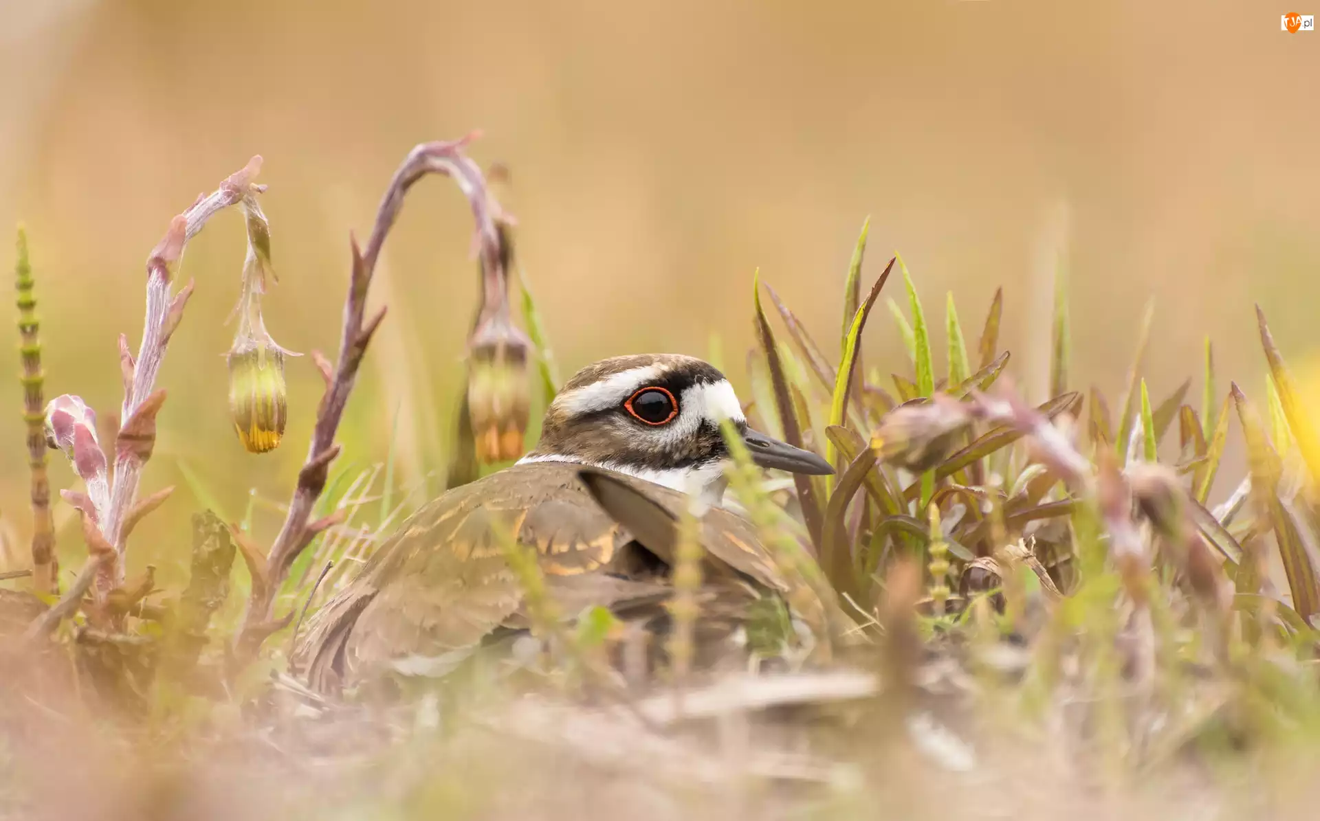 Ptak ukryty w trawie