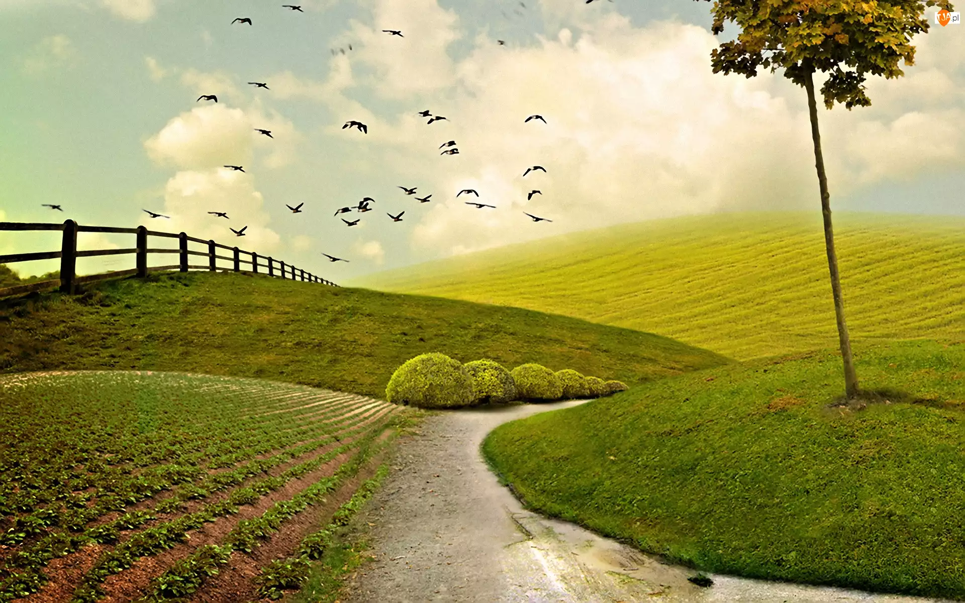 Ptaki, Łąka, Droga