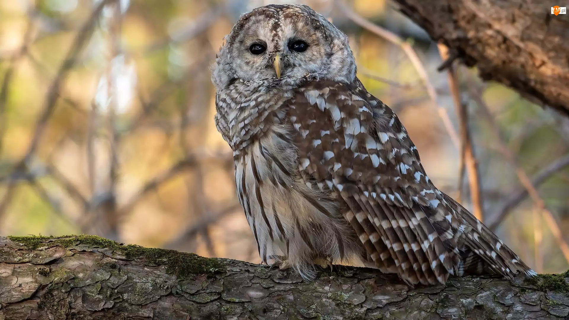 Puszczyk kreskowany, Drzewa, Sowa, Ptak, Konar